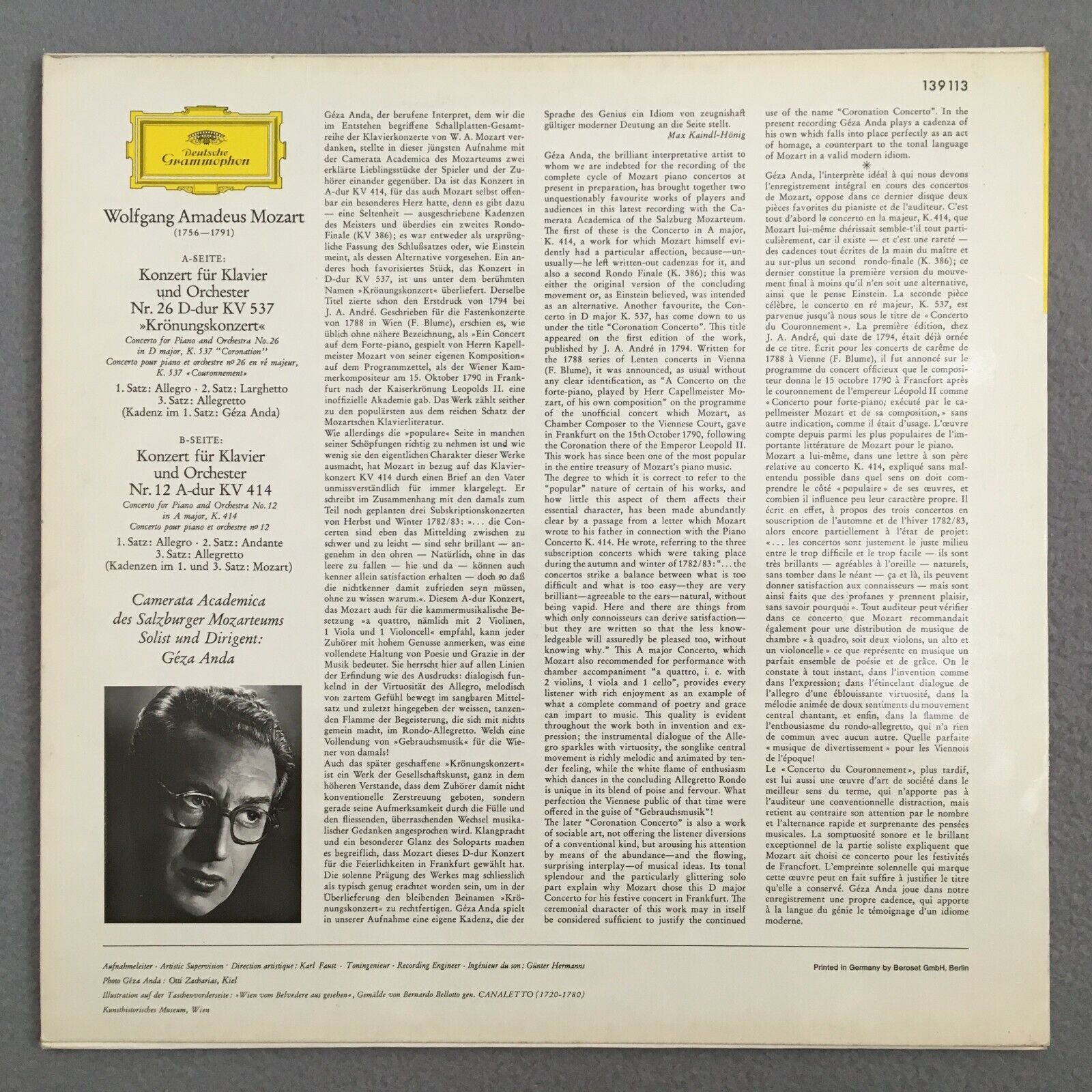 V334 Mozart Piano Concertos No.26 & No.12 Anda DGG 139 113 Stereo