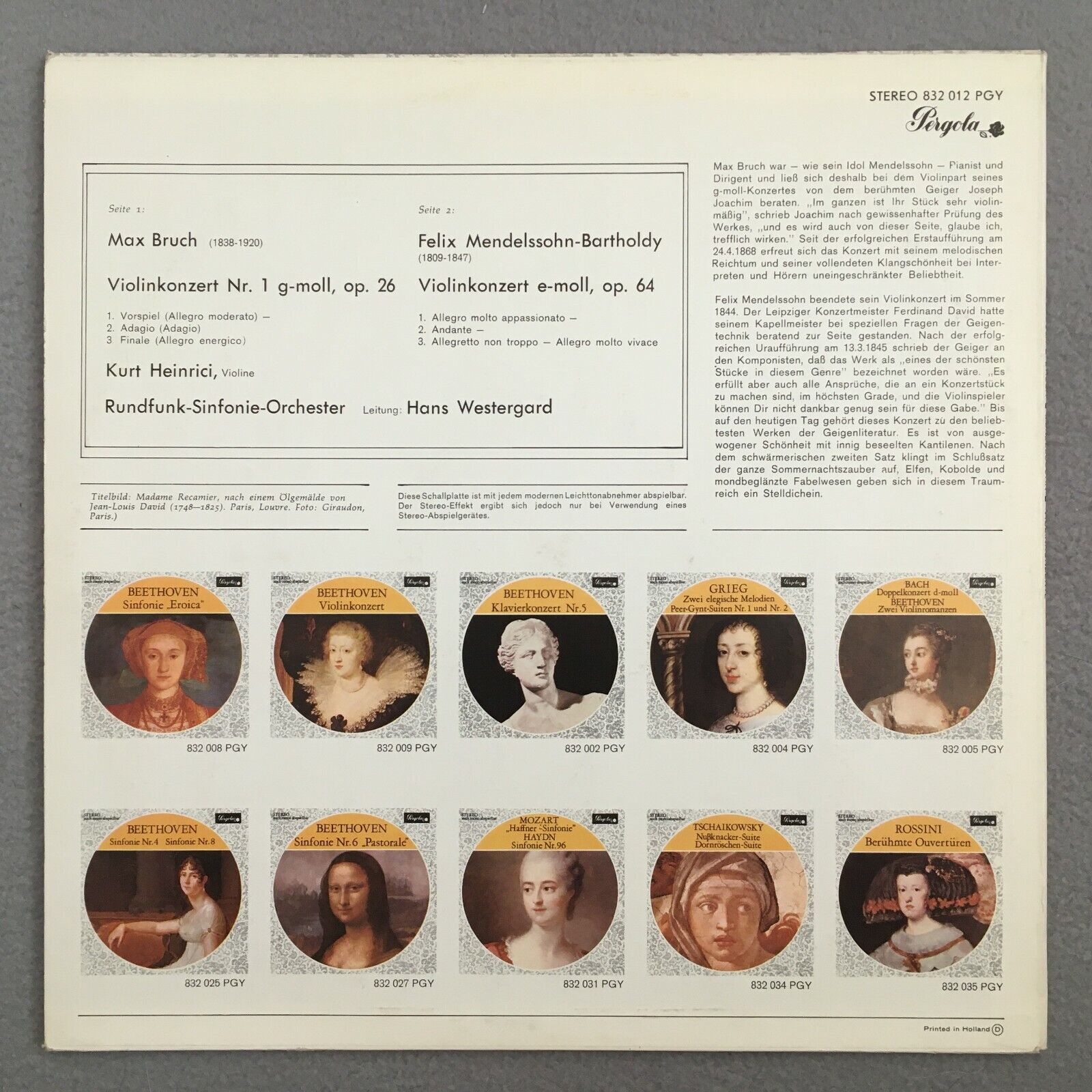 V337 Bruch Mendelssohn Violin Concertos Heinrici Westergard Pergola 832 012 St