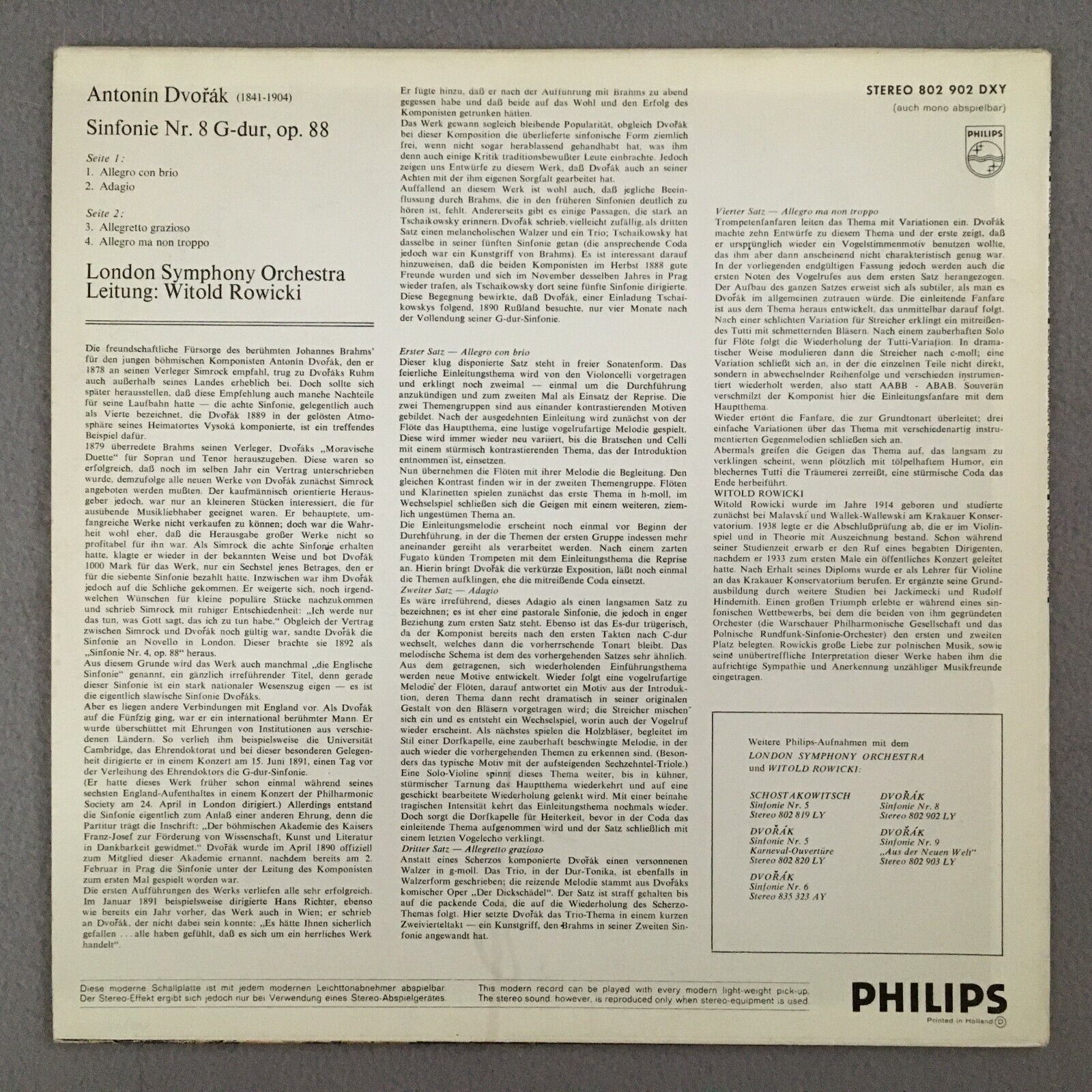 V342 Dvorak Symphony No.8 Rowicki LSO Philips 802 902 DXY Stereo