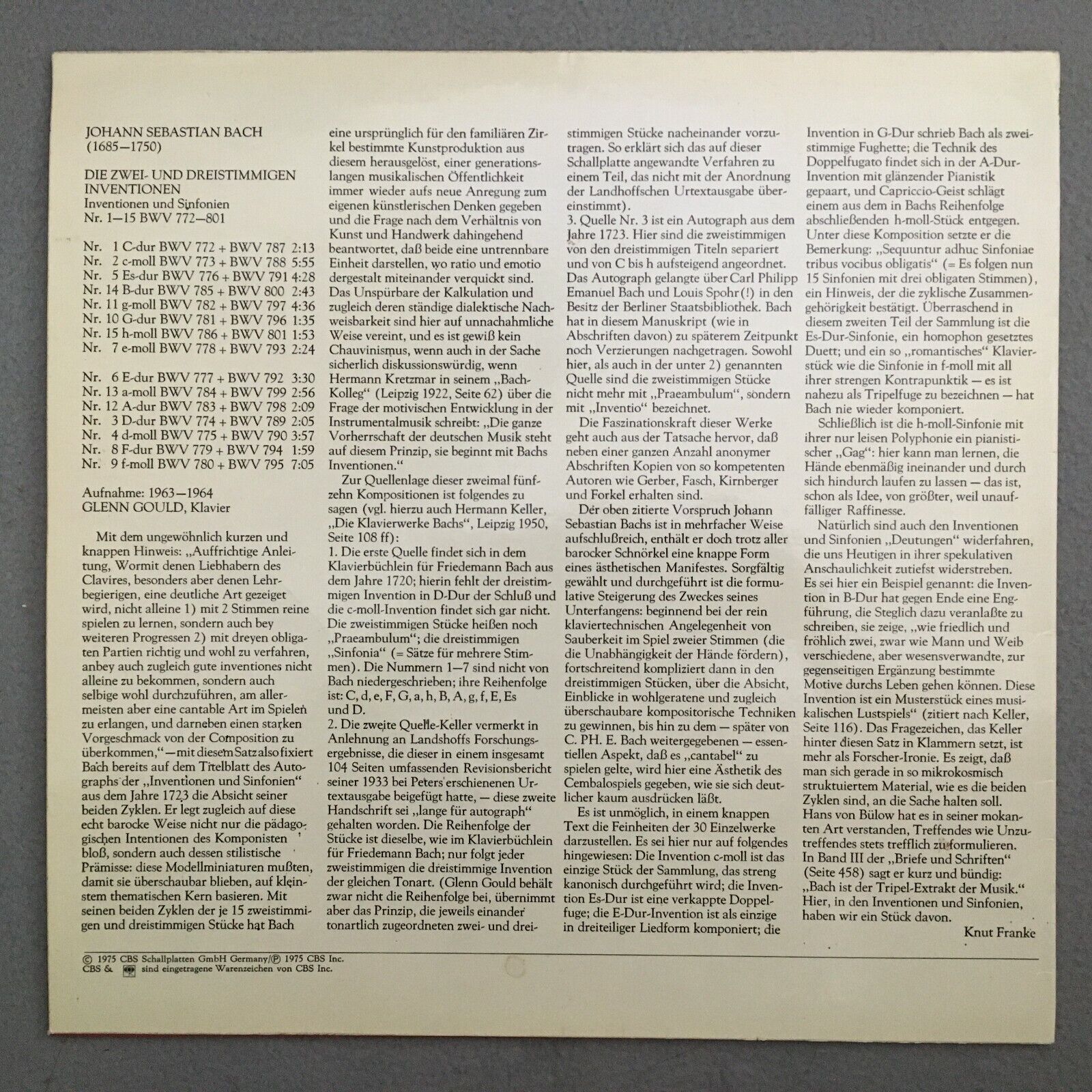 V368 Bach Inventions and Symphonies No.1-15 Gould CBS 61 601 Stereo