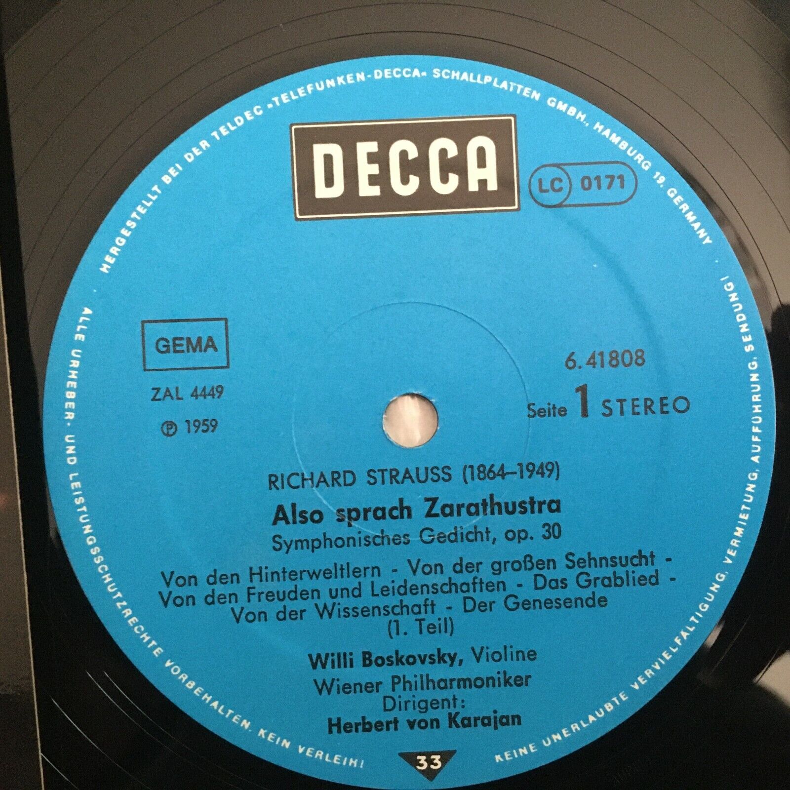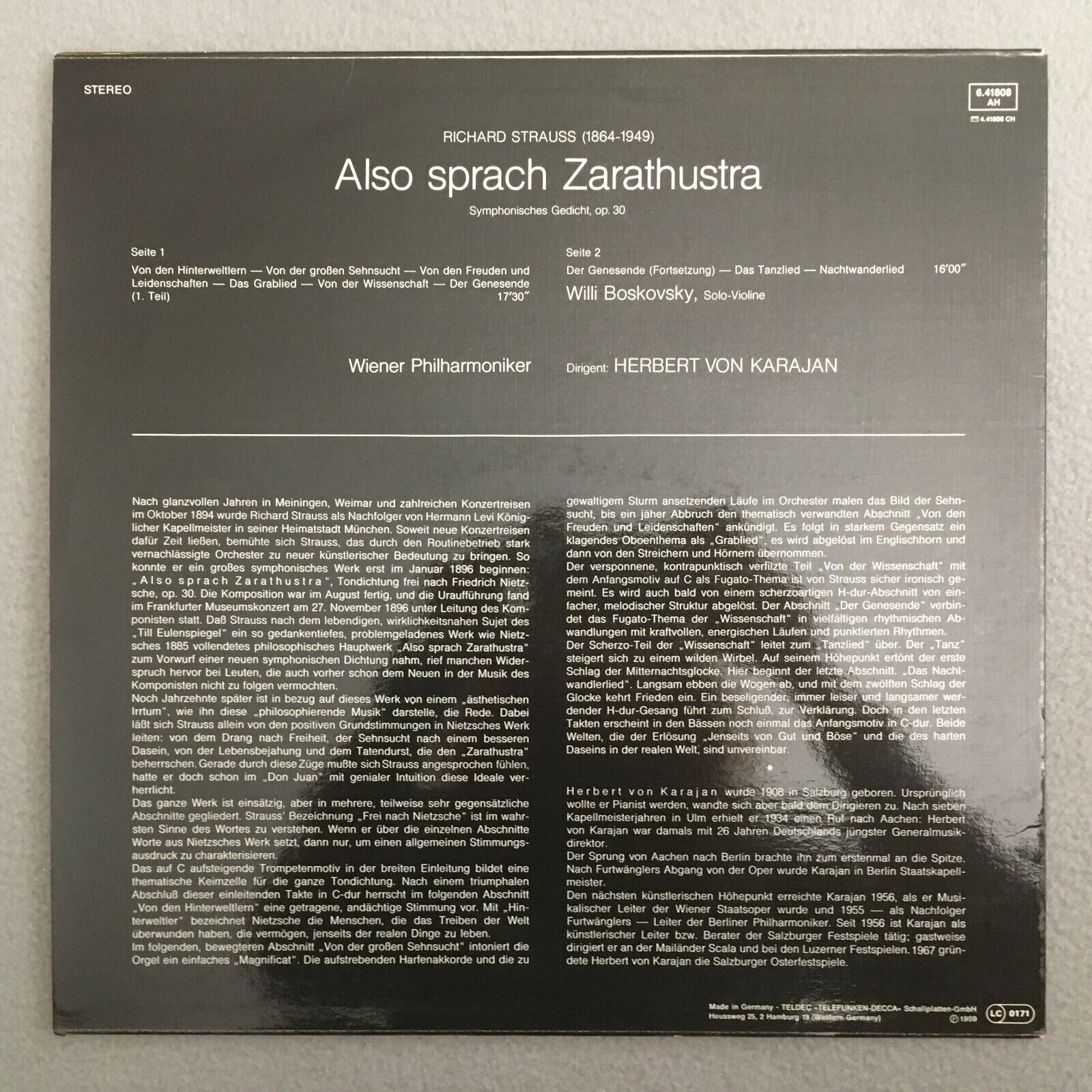 V392 R. Strauss Zarathustra Boskovsky Karajan VPO DECCA 6.41808 AH Stereo