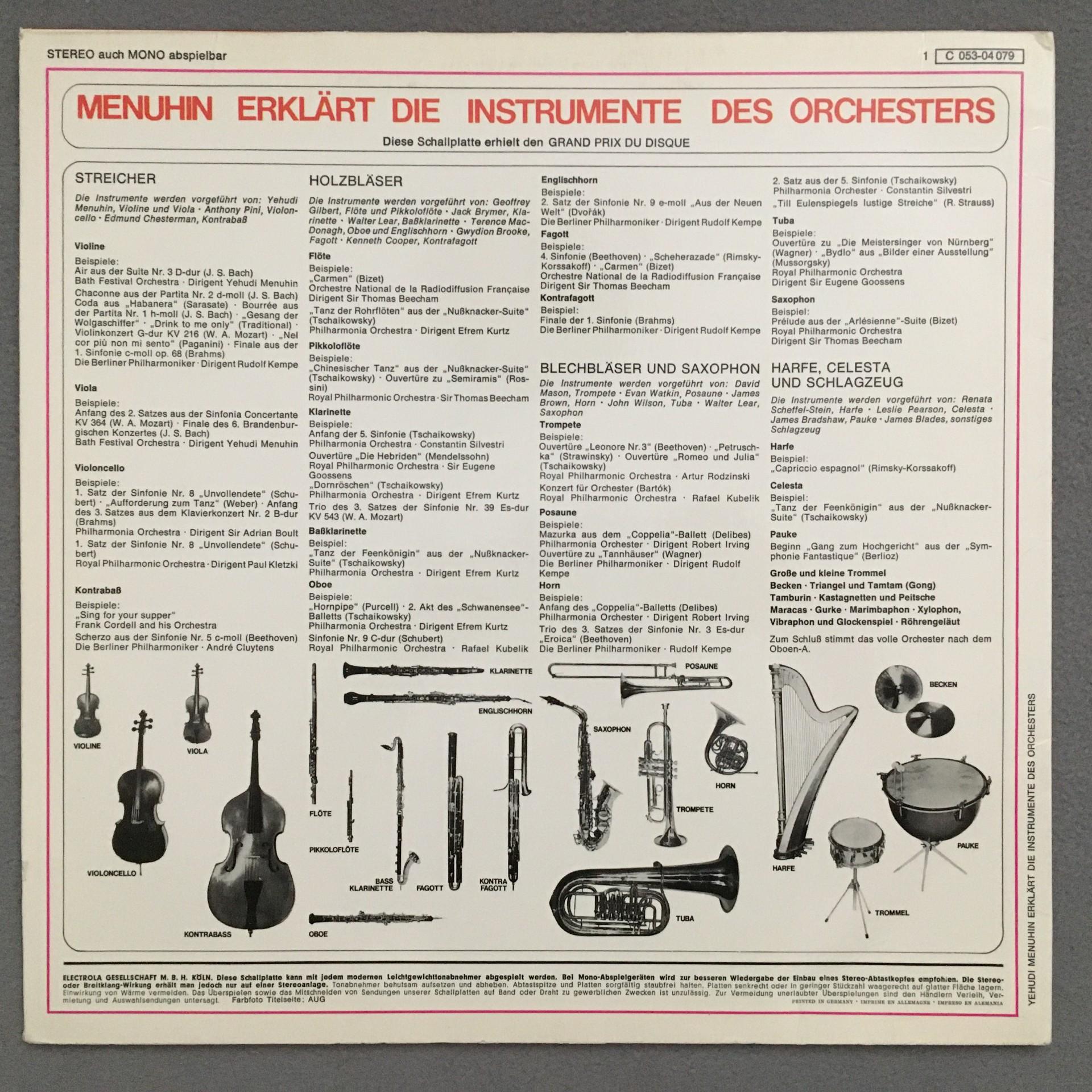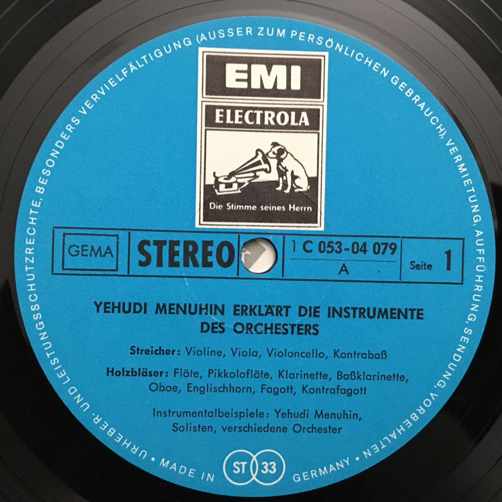 O703 Menuhin explains the Instruments of the Orchestra EMI 1 C 053-04 079 Ster