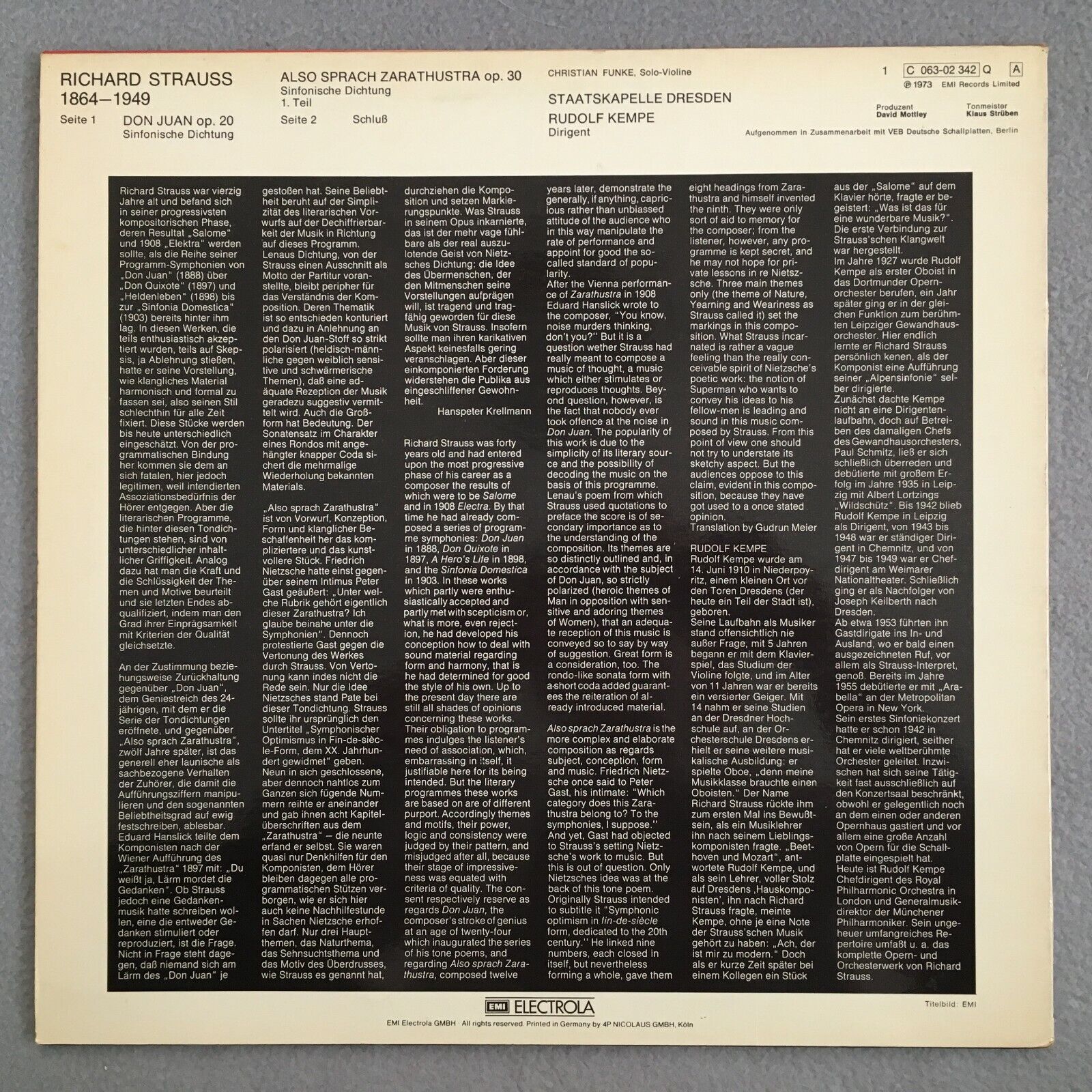V444 R. Strauss Zarathustra Don Juan Kempe EMI 1 C 063-02 342 Q Quadro