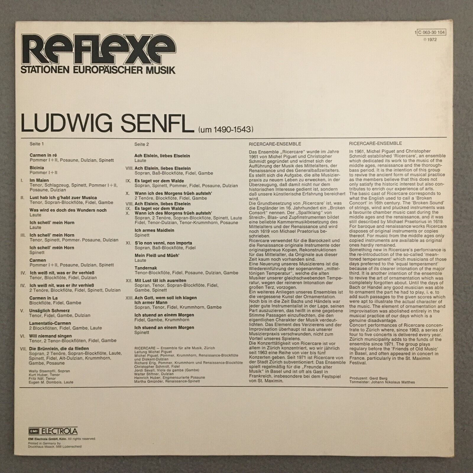 V454 Senfl German Songs Staempfli Näf Piguet EMI Reflexe 1 C 063-30 104 Stereo