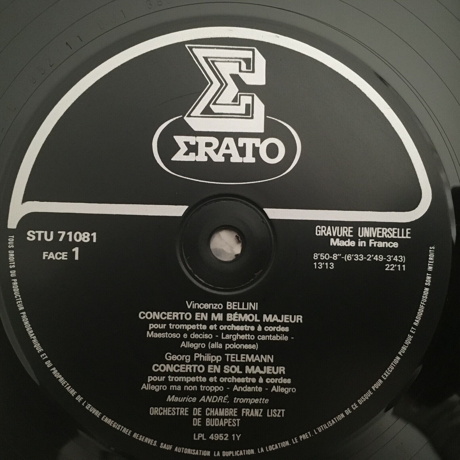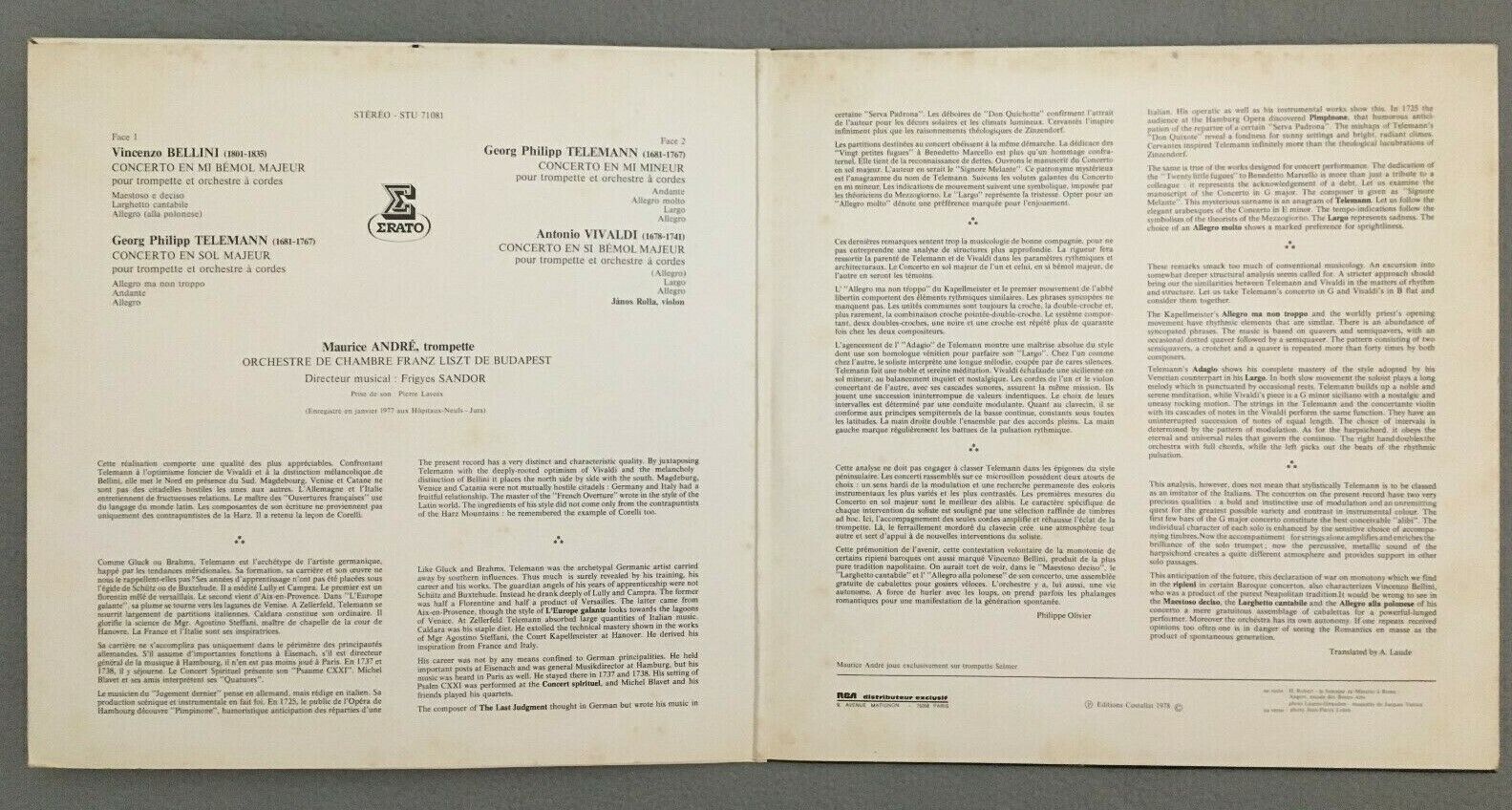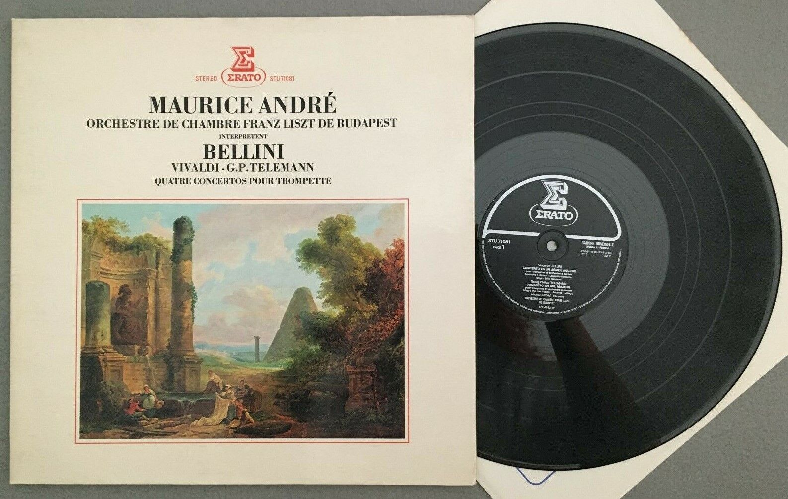 V459 Bellini Vivaldi Telemann Trumpet Concertos Andre Erato STU 71081 Stereo