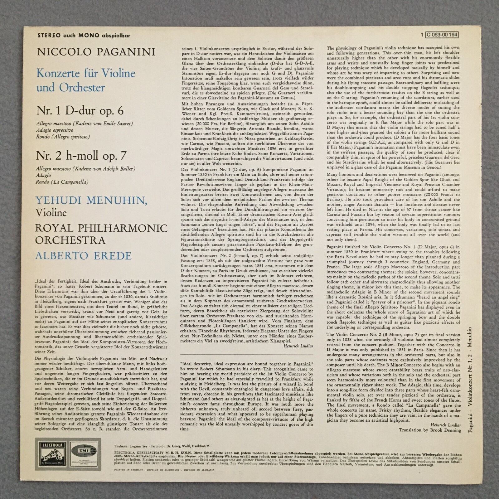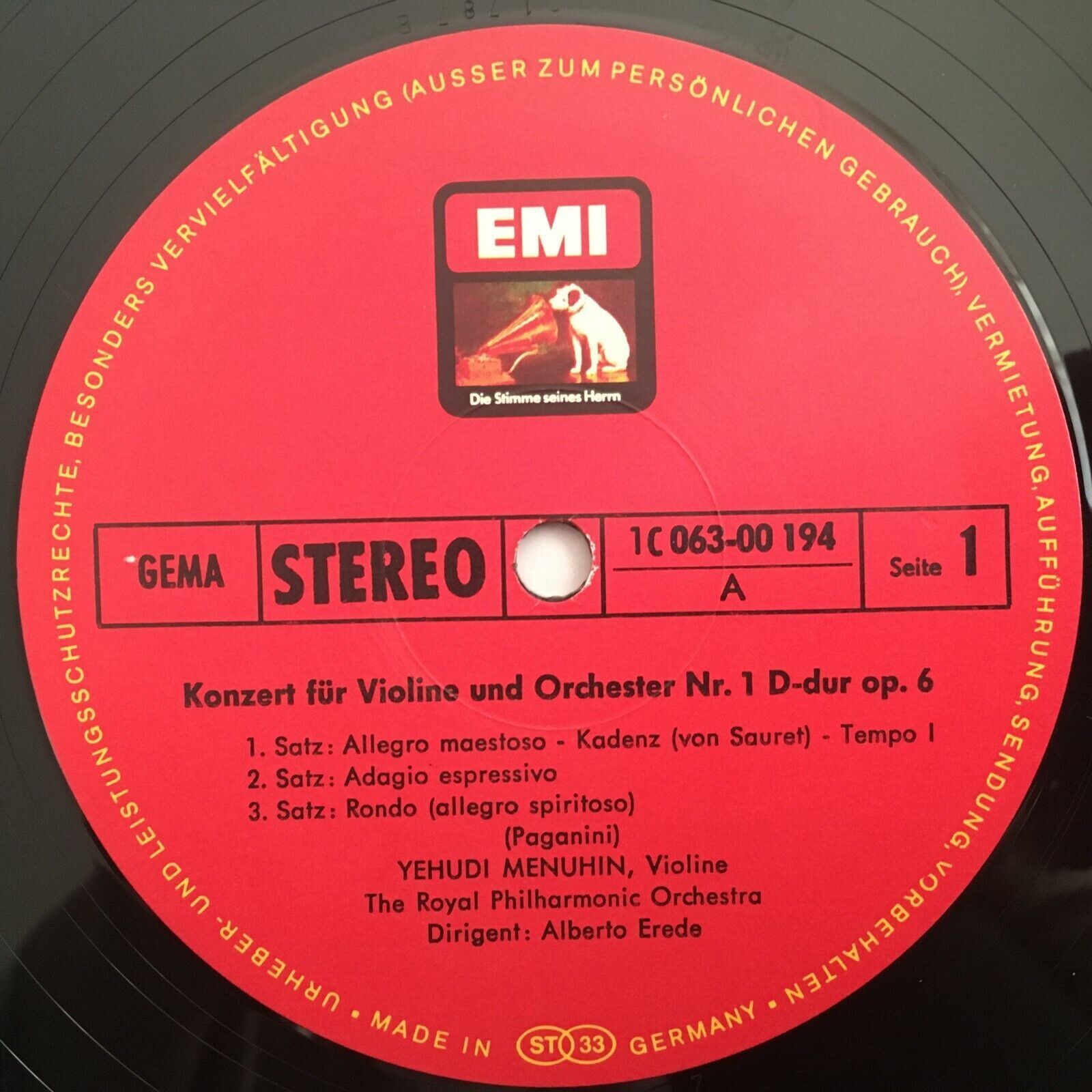V463 Paganini Violin Concertos No.1 & 2 Menuhin Erede EMI 1 C 063-00 194 Stereo