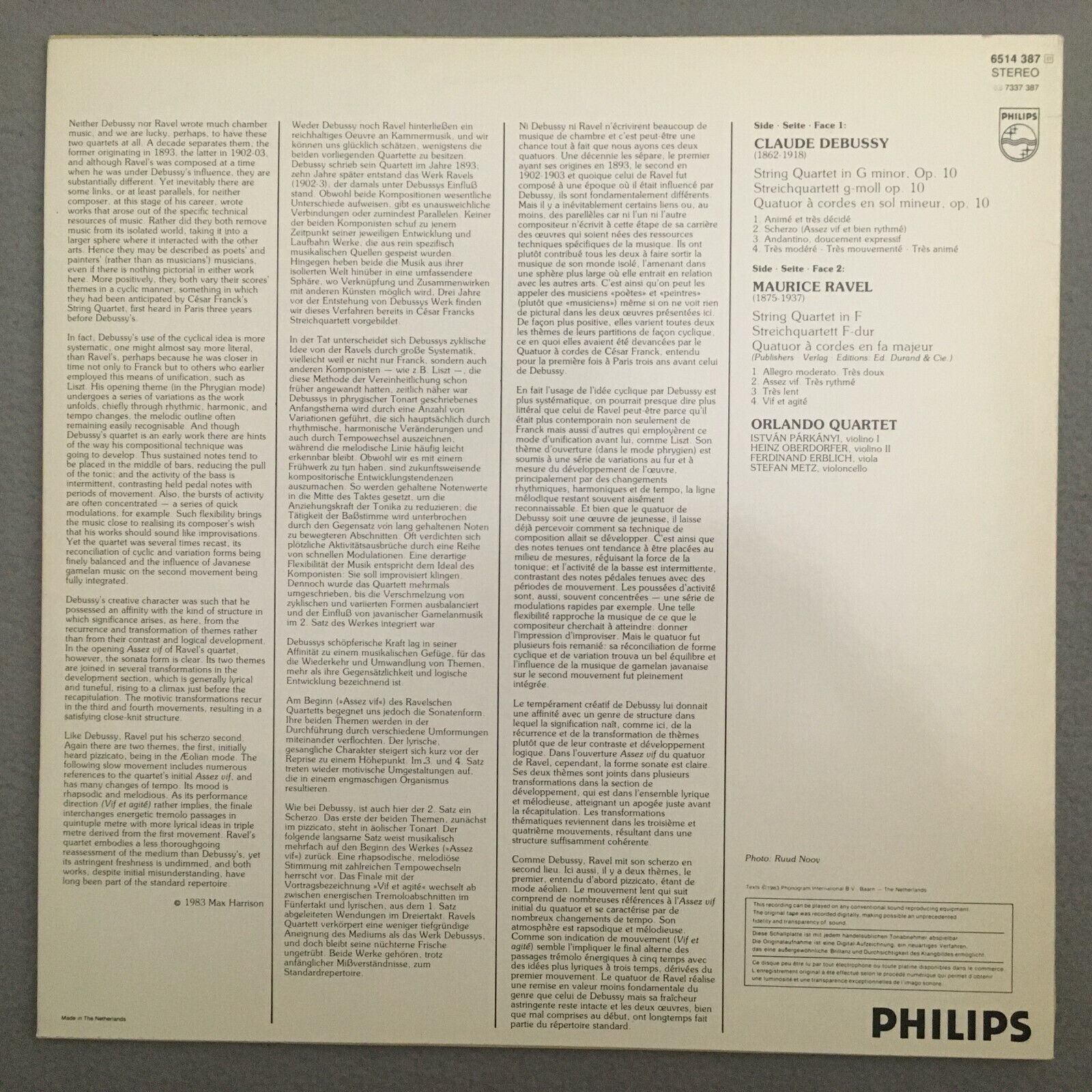 V469 Debussy Ravel String Quartets Orlando Quartet Philips 6514 387 Digital St