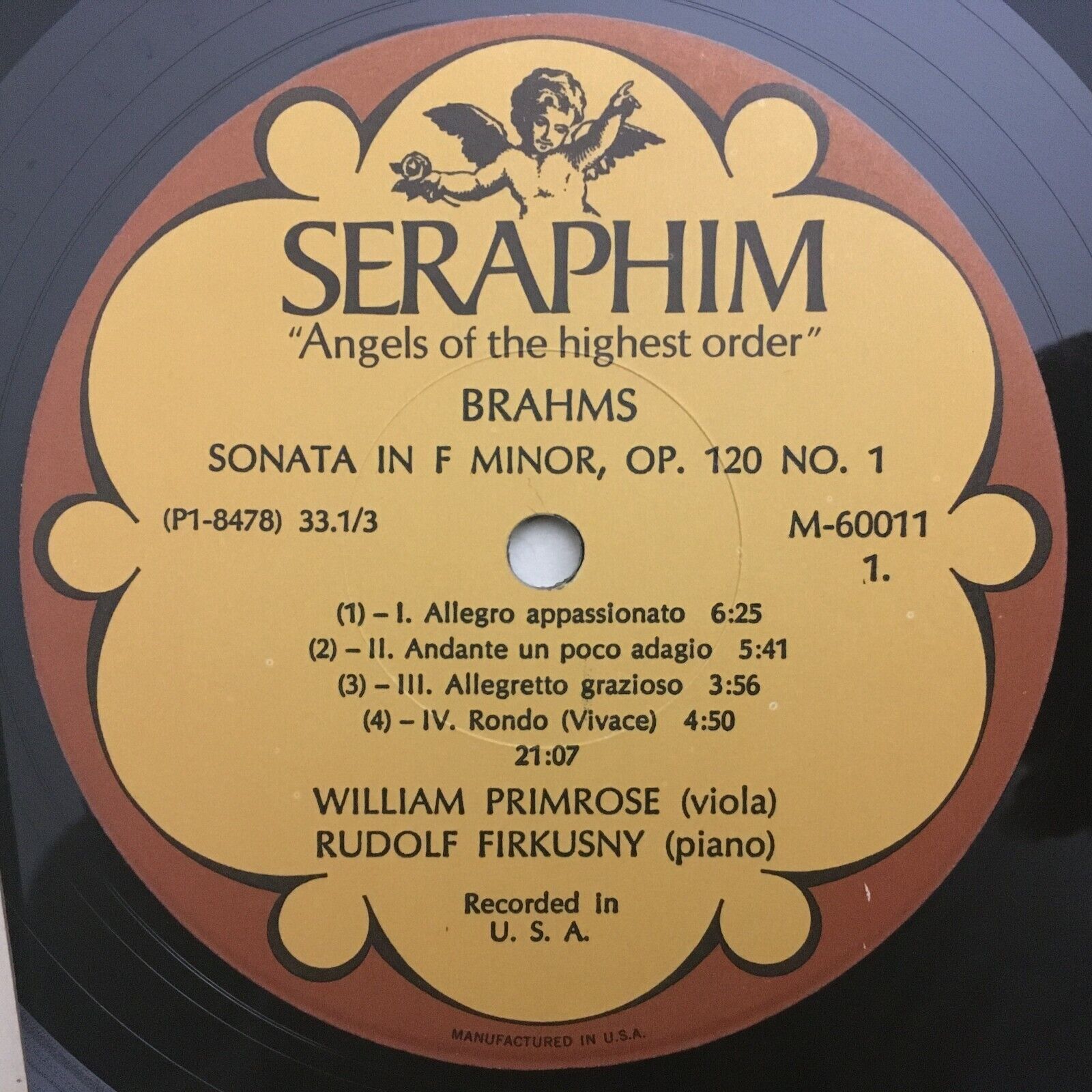 V501 Brahms 2 Sonatas Primrose Viola Firkusny Piano Seraphim 60011