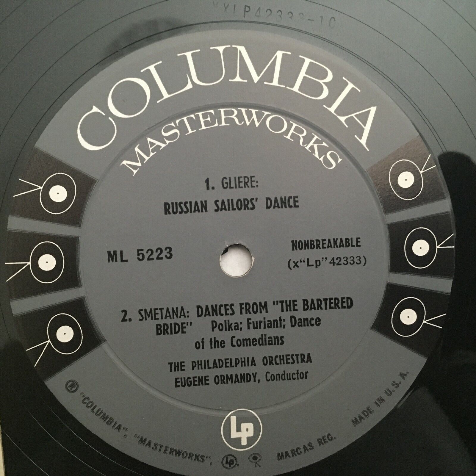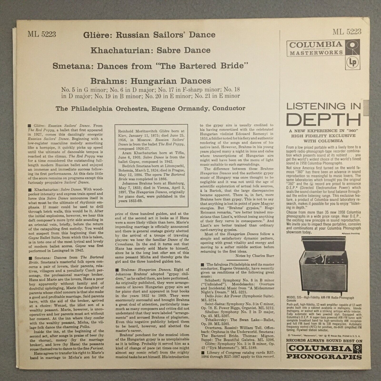 V502 Gliere Russian Sailors Dance Brahms Dances Ormandy Columbia 6 Eye ML 5223