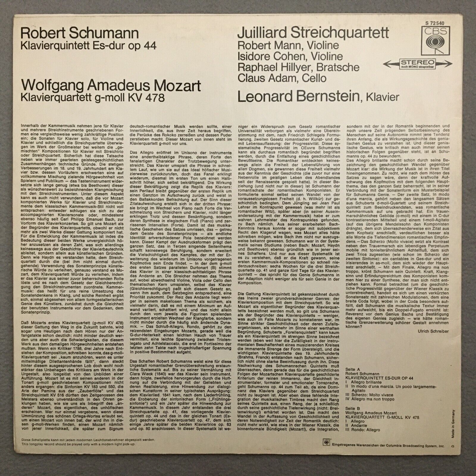 V530 Schumann Quintet Mozart Quartet Bernstein Piano Juilliard CBS S 72540 St