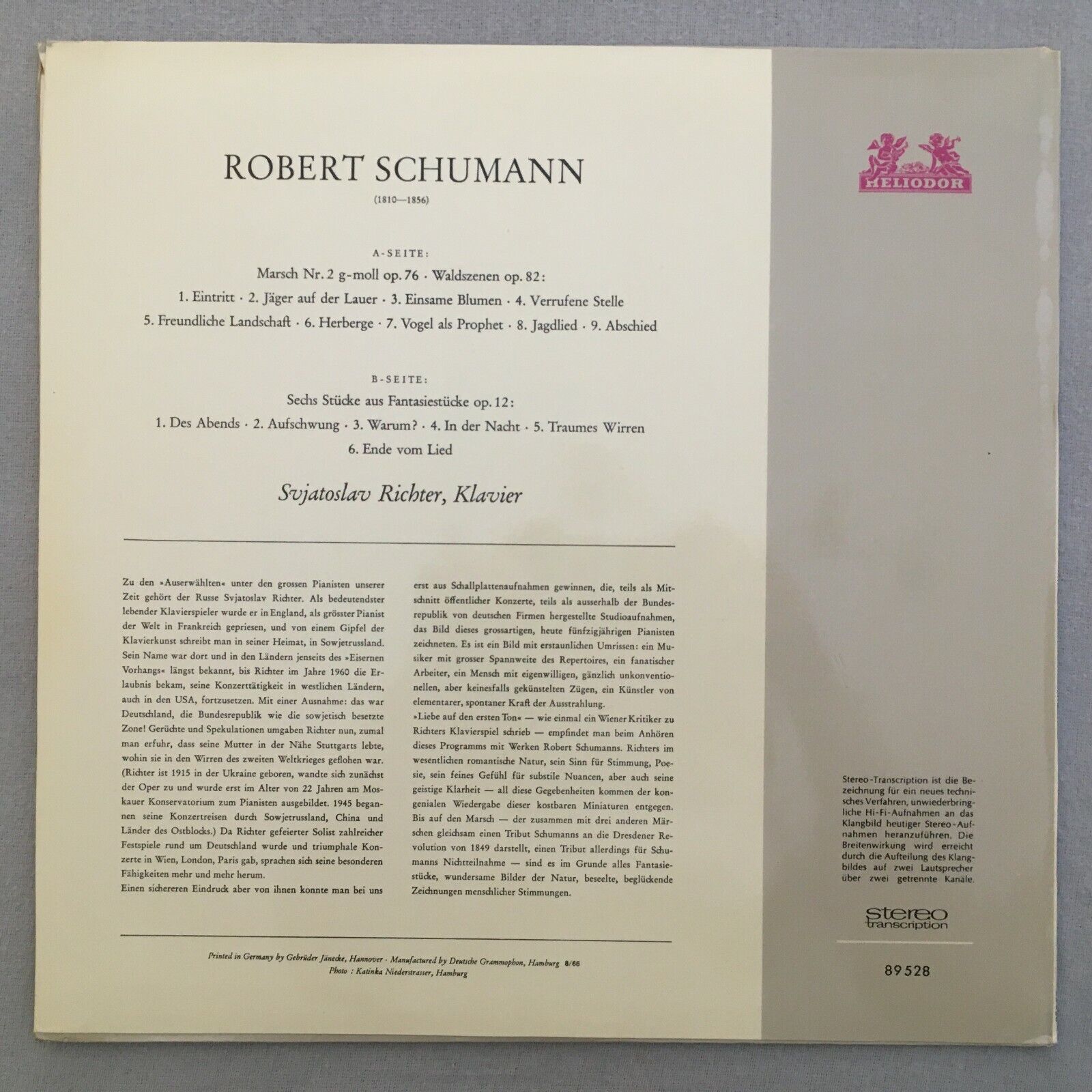 V532 Schumann March Scenes Fantasy Pieces Richter Piano Heliodor 89 528 Stereo