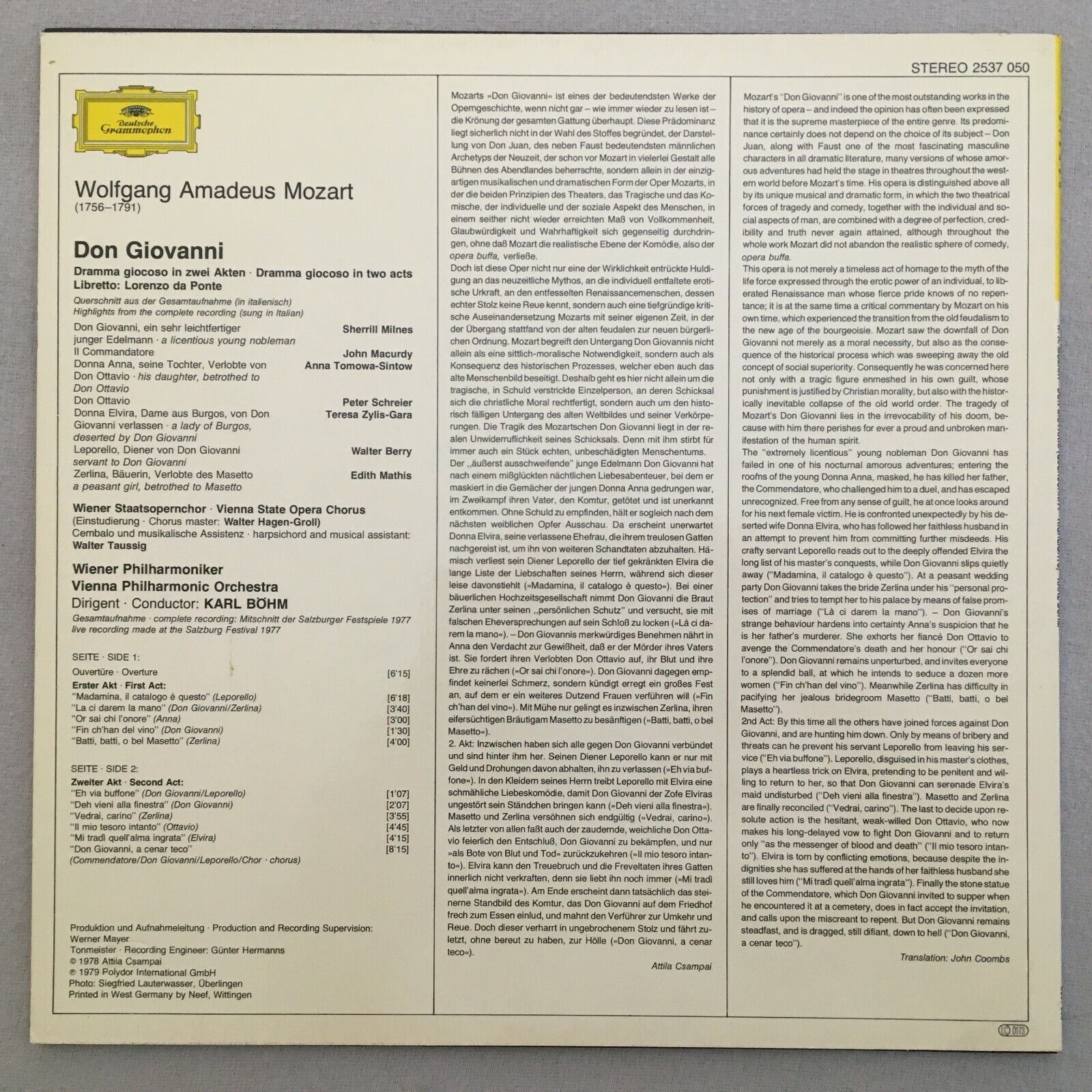 V534 Mozart Don Giovanni Mathis Milnes Schreier Bohm VPO DGG 2537 050 Stereo