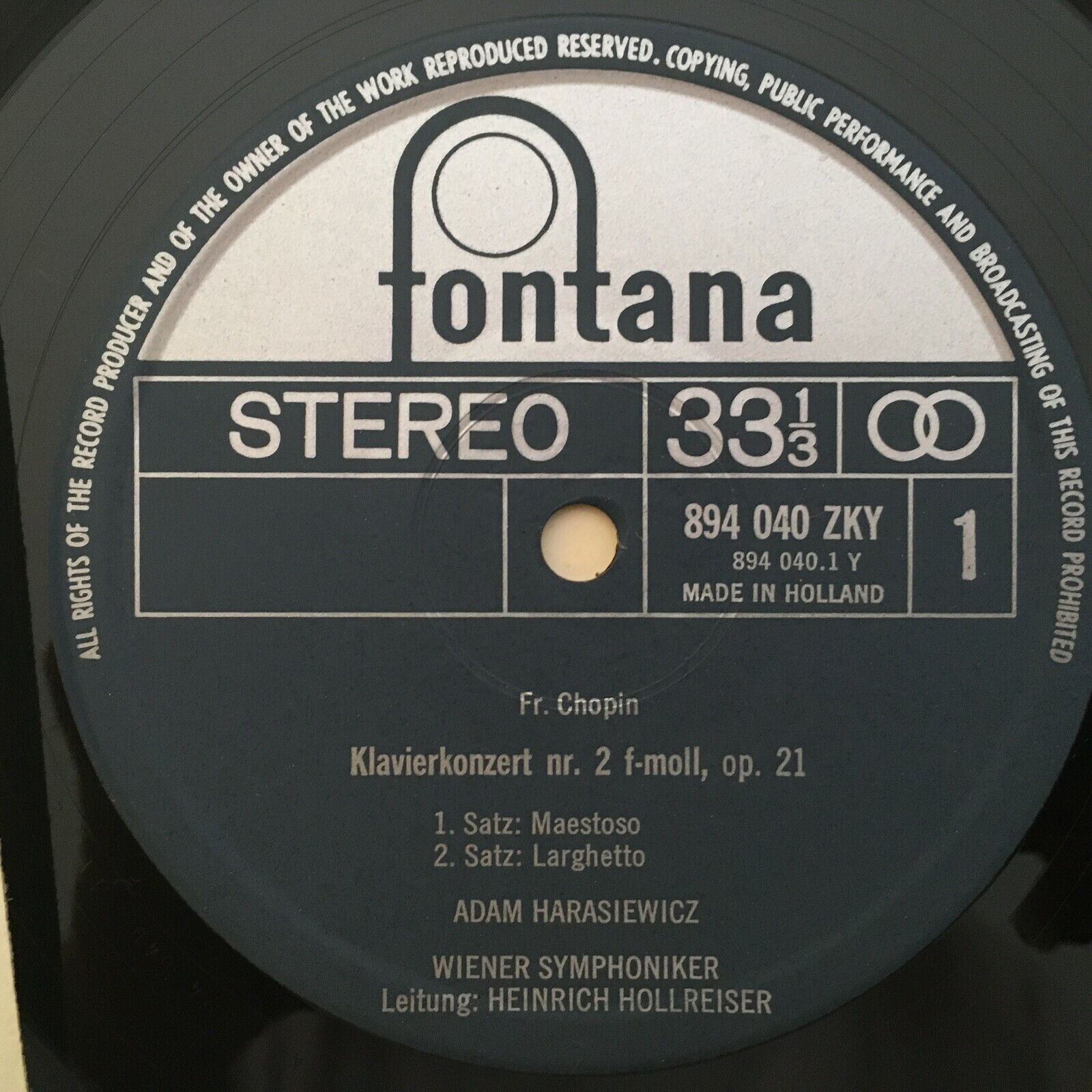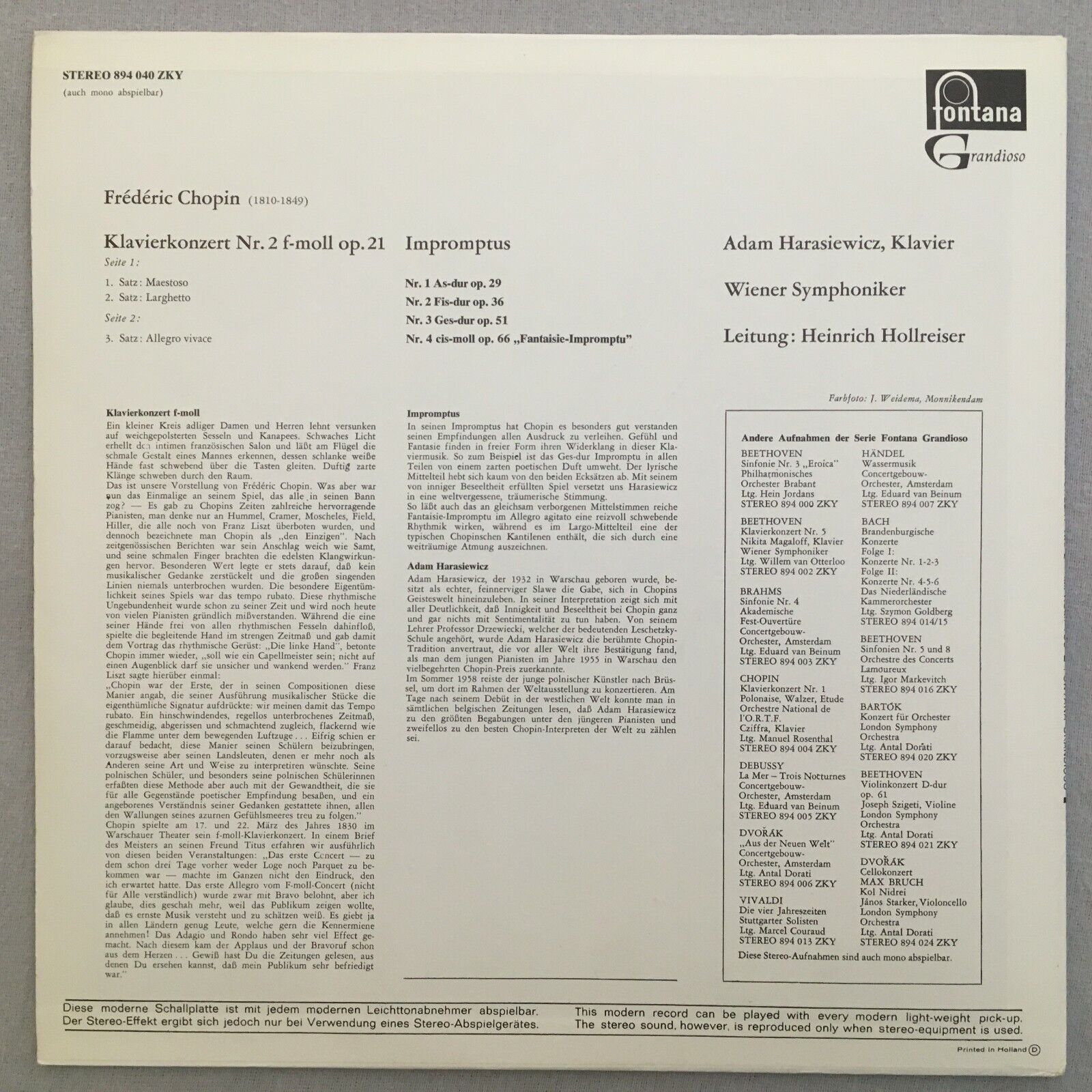 V536 Chopin Piano Concerto Harasiewicz Hollreiser VSO Fontana 894 040 ZKY Stereo