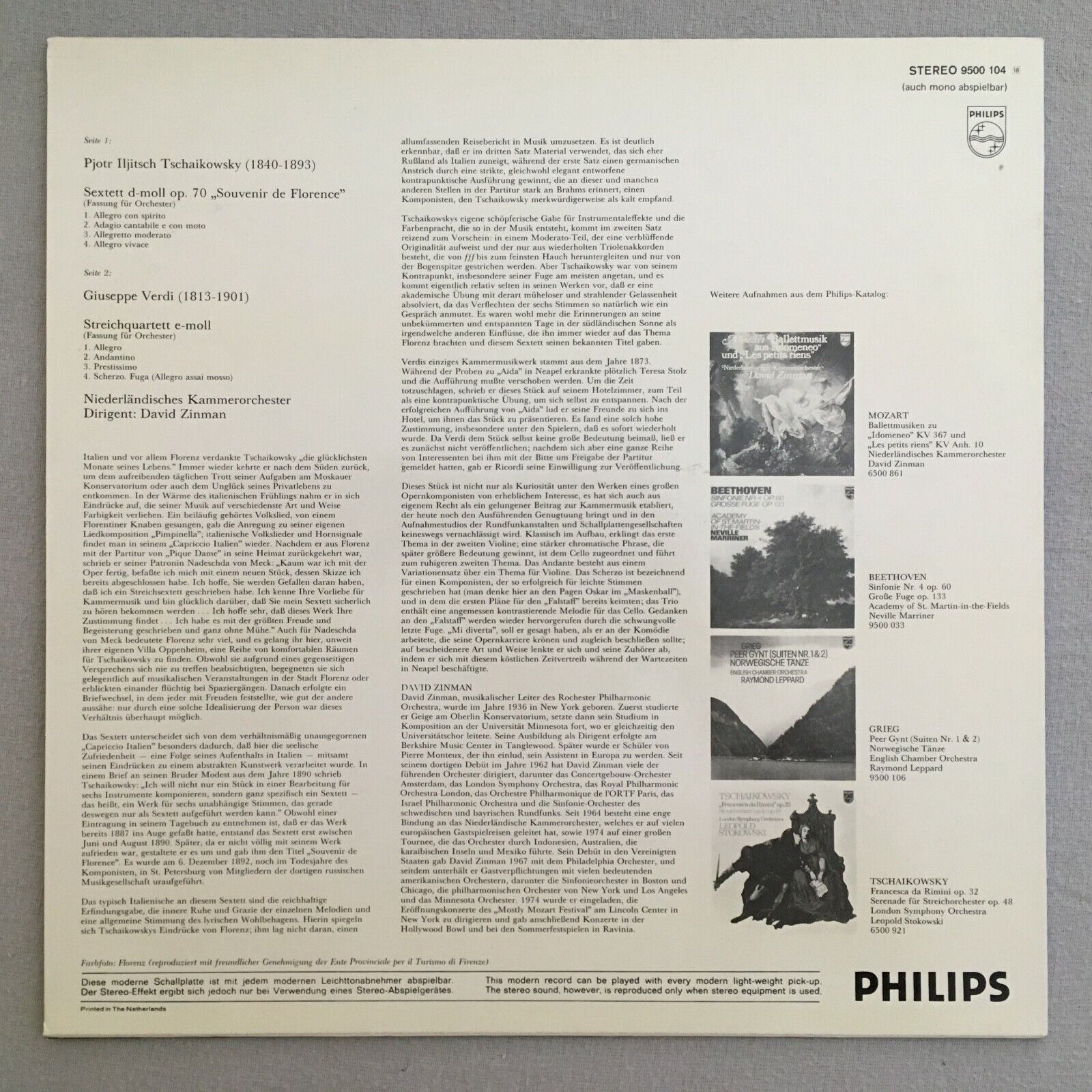V572 Tchaikovsky Sextet Verdi String Quartet Zinman Philips 9500 104 Stereo