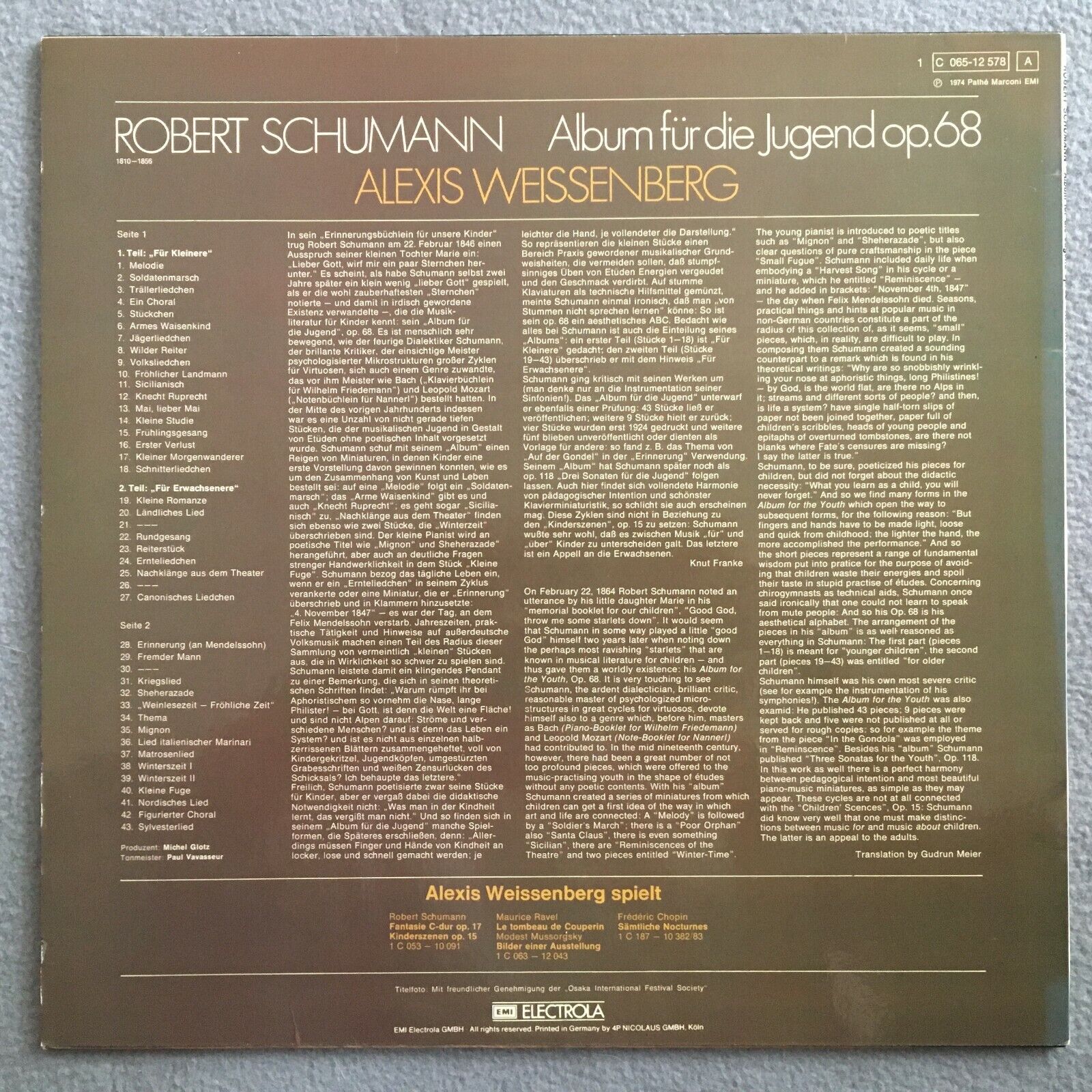 V058 Schumann Album for the Youth Op.68 Weissenberg EMI 1 C 065-12 578 Stereo