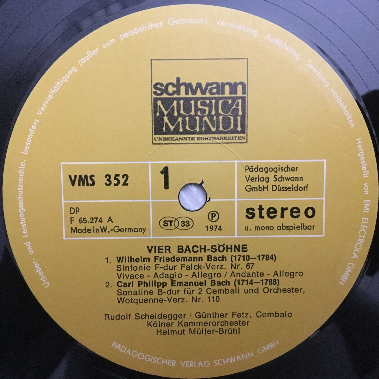 V081 The 4 Bach Sons Symphonies Concerto Müller-Brühl Schwann VMS 352 Stereo