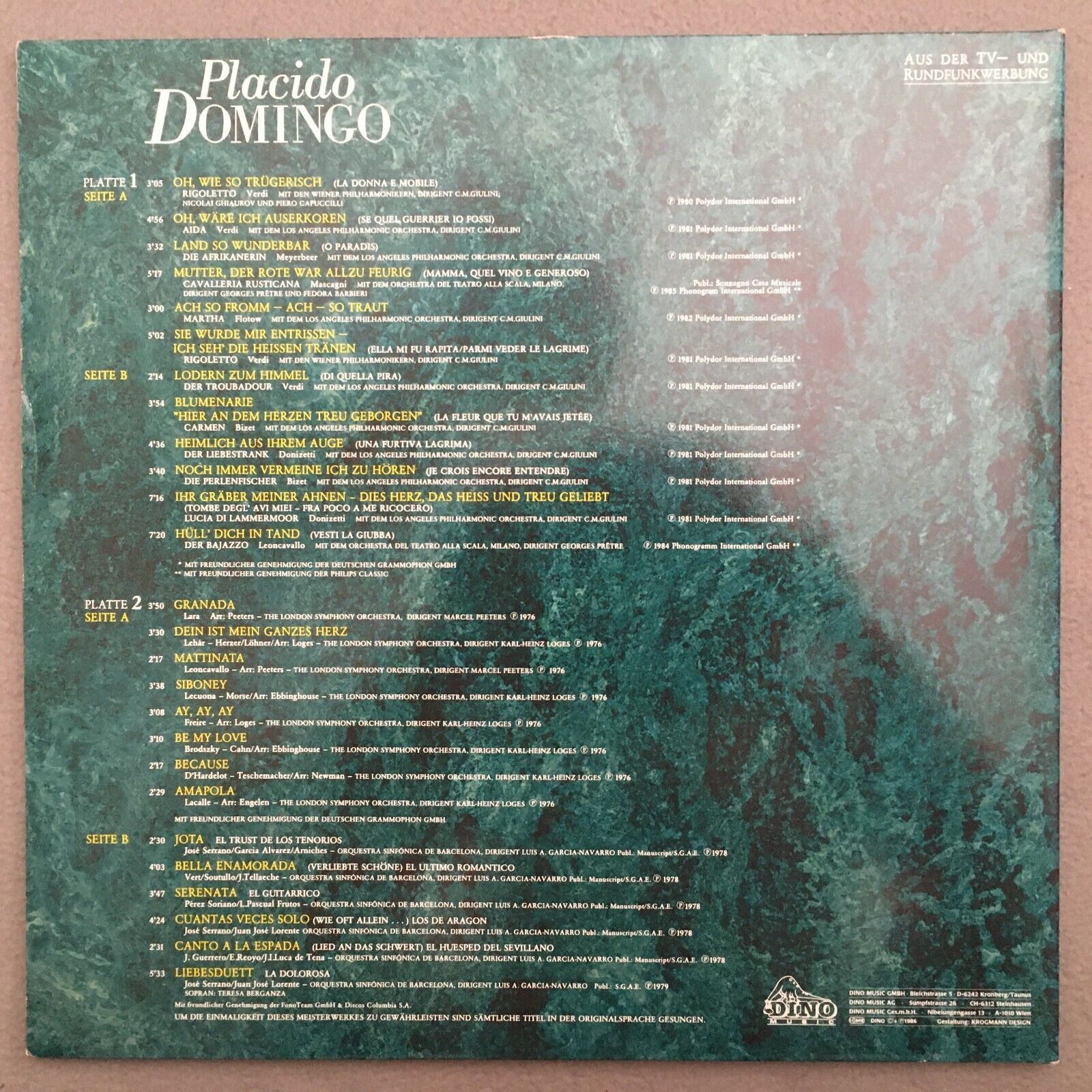 V084 Placido Domingo Master Works 2LP DINO Music DIO DLP 1261 Stereo