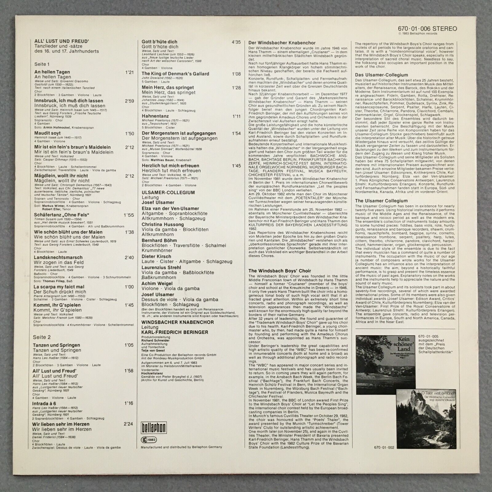 V130 All Lust und Freud Dances Boy´s Choir Windsbach Bellaphon 670 01 006 Stereo
