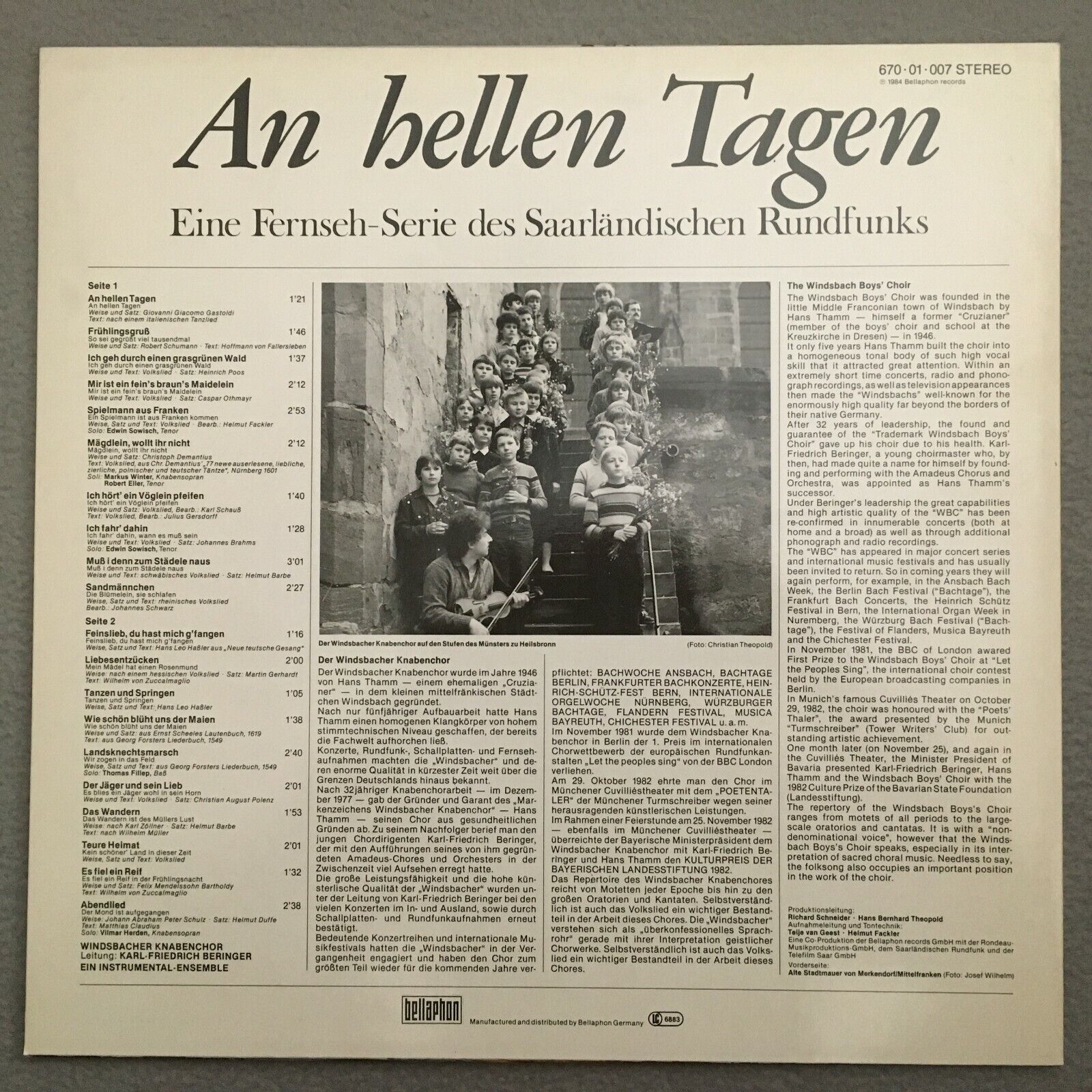 V141 An hellen Tagen Windsbach Boy´s Choir Beringer Bellaphon 670 01 007 Stereo