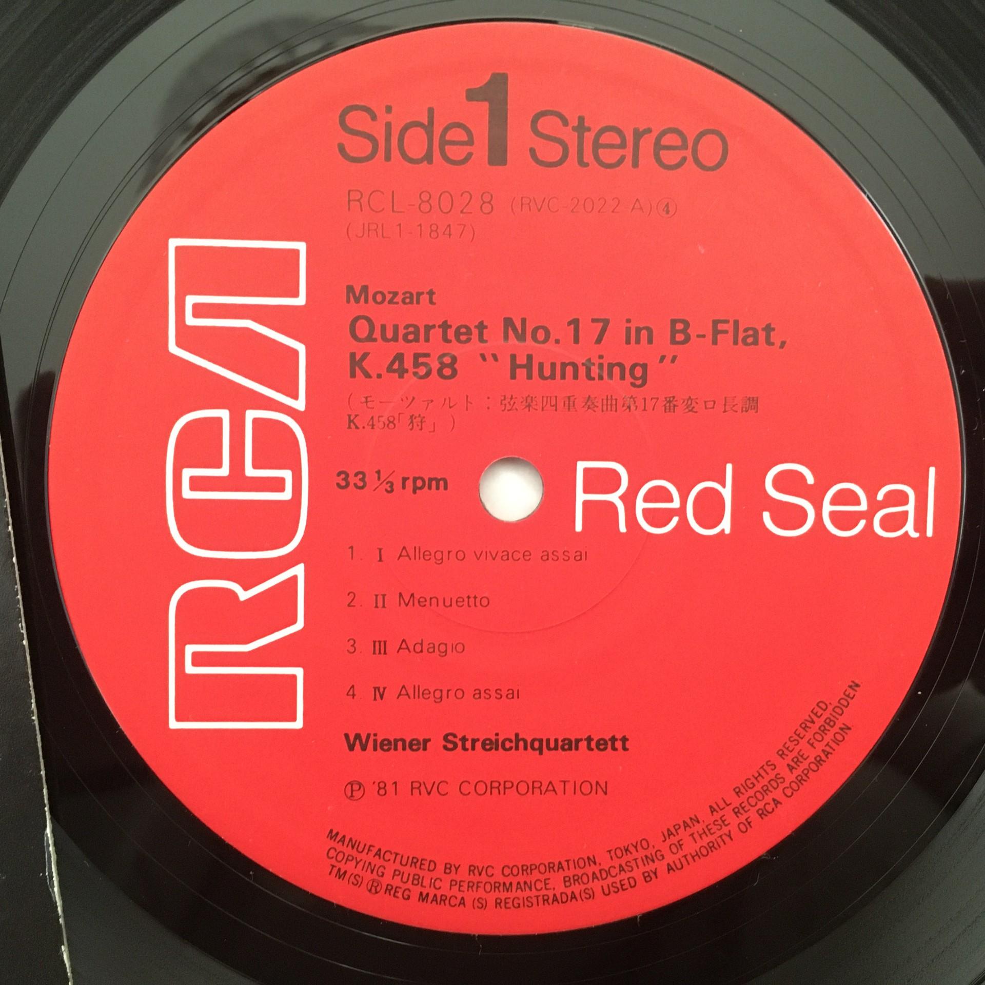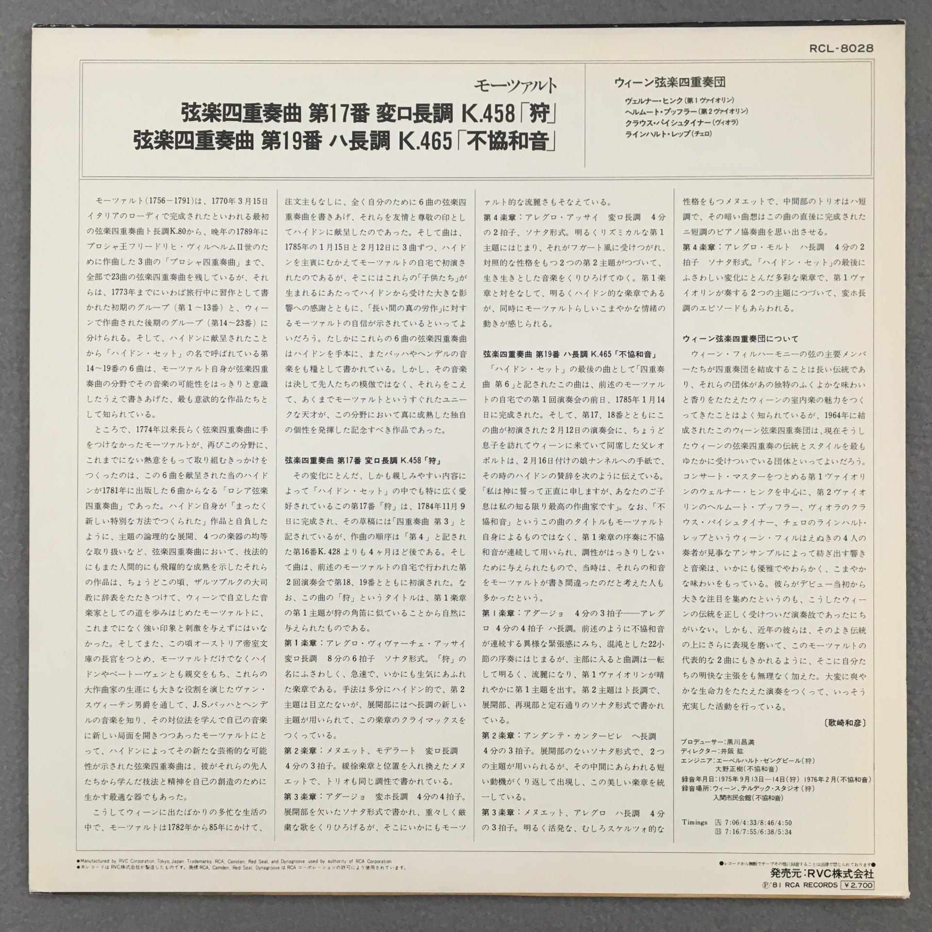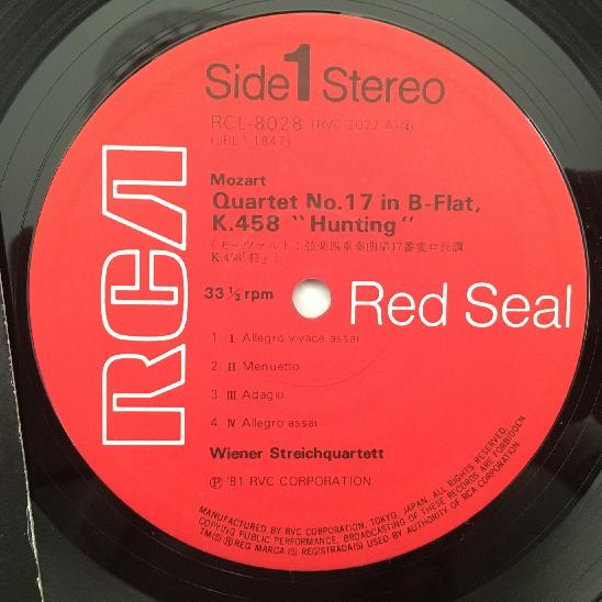 L675 Mozart Quartets Vienna String Quartet RCA RCL-8028 Stereo