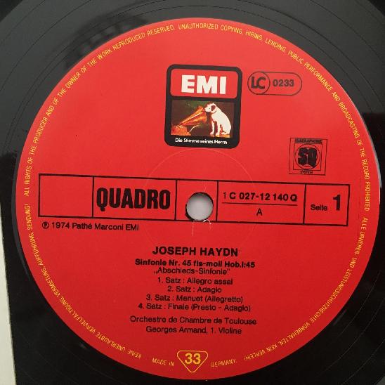 L677 Haydn Symphonies Concerto Armand Auriacombe EMI 1C 027-12 140 Q Quadro