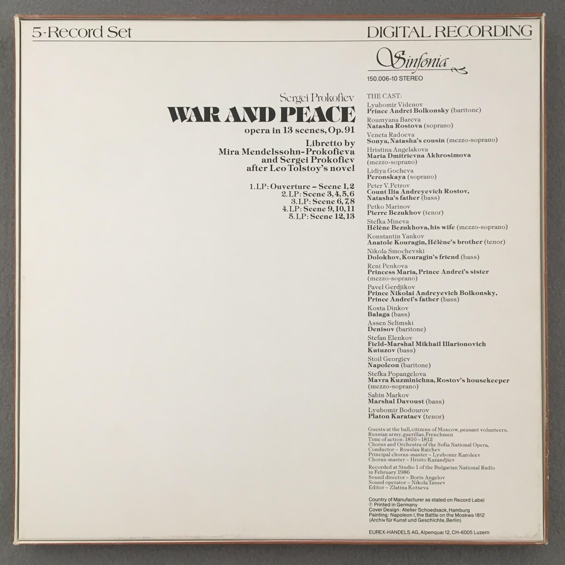 D062 Prokofiev War & Peace Raichev 5LP Sinfonia 150.006-10 Digital Stereo