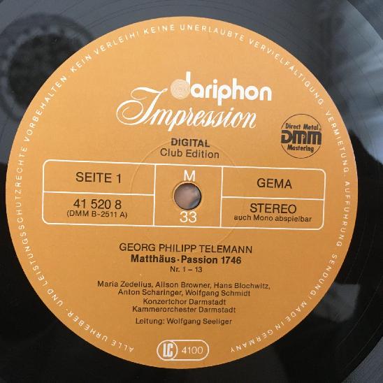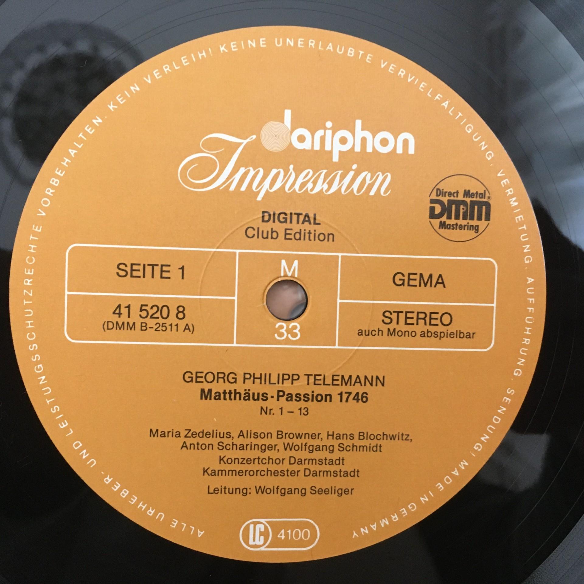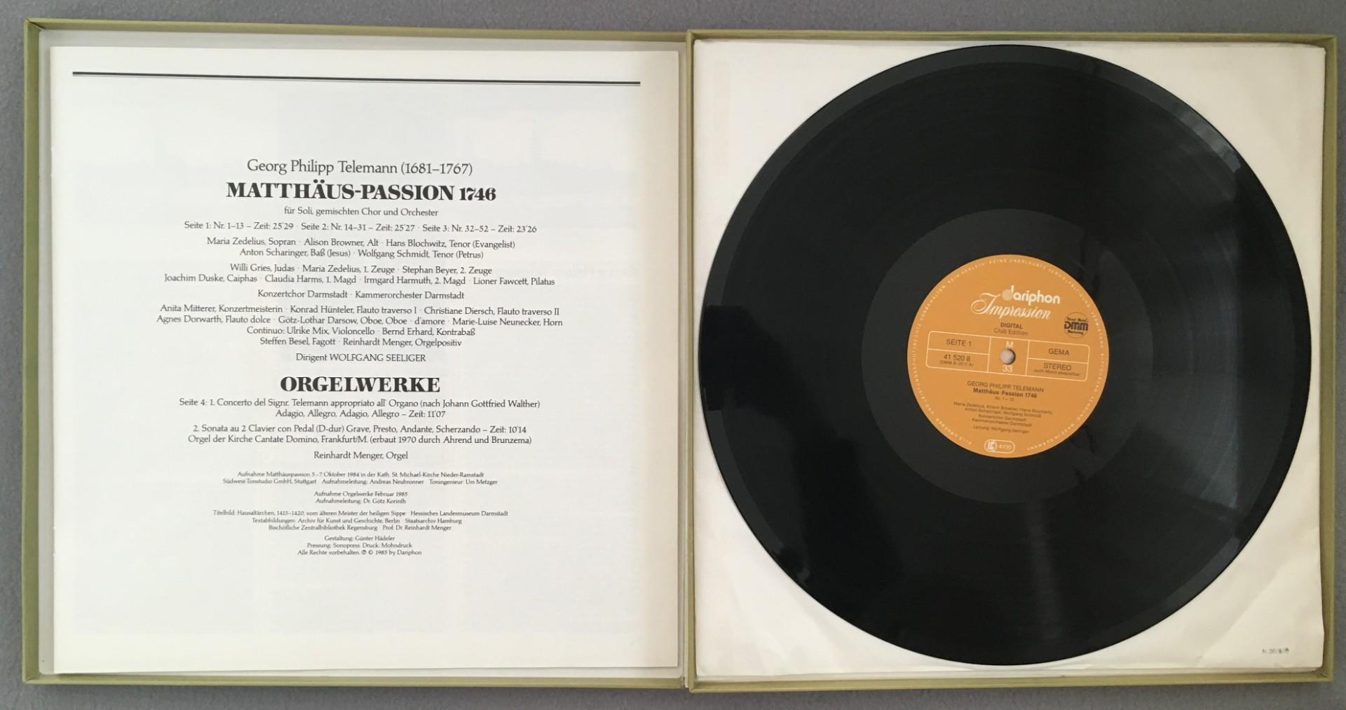 D066 Telemann St. Matthew Seeliger 2LP Dariphon 091/41519 0 Digital Stereo