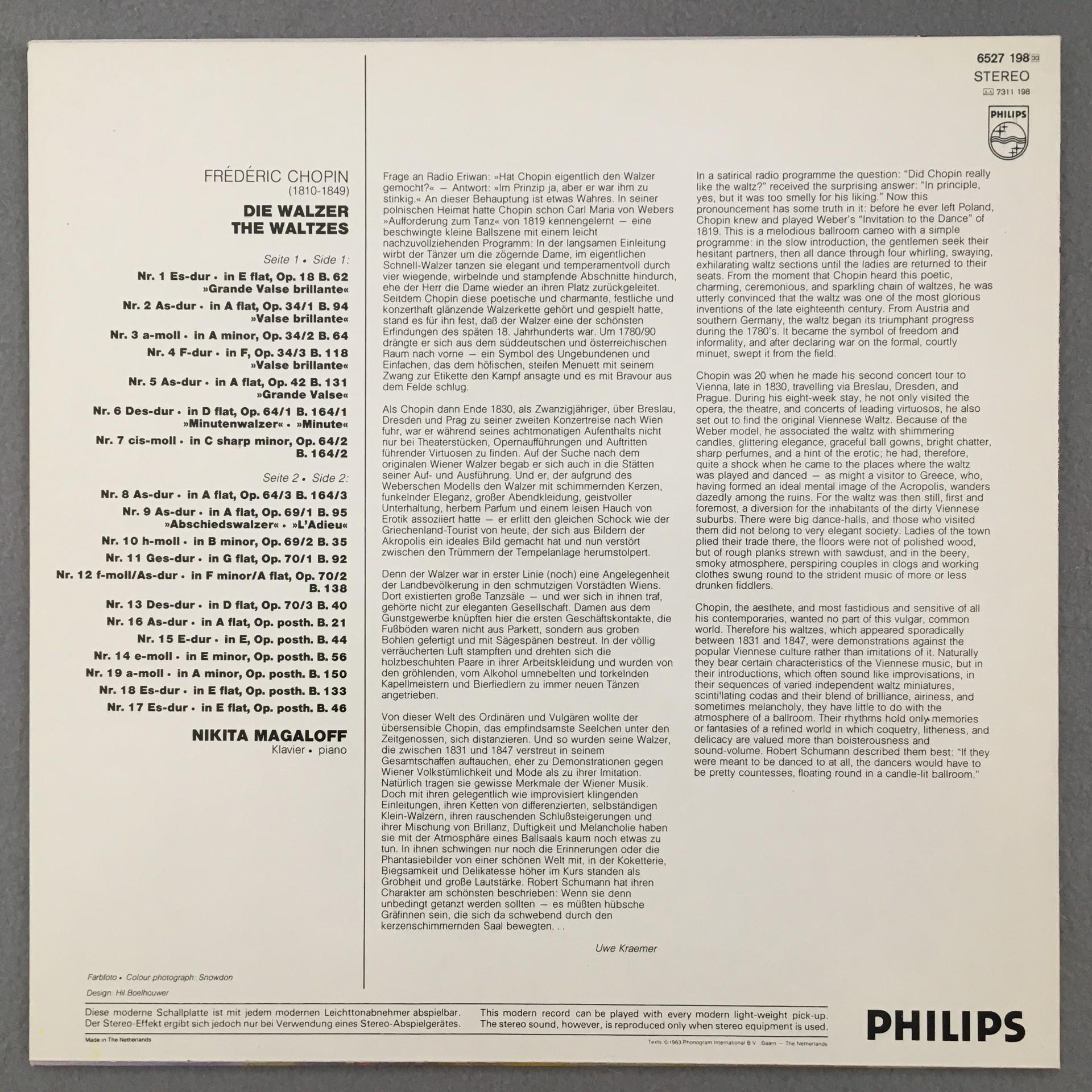 L684 Chopin 19 Waltzes Magaloff Piano Philips 6527 198 Stereo