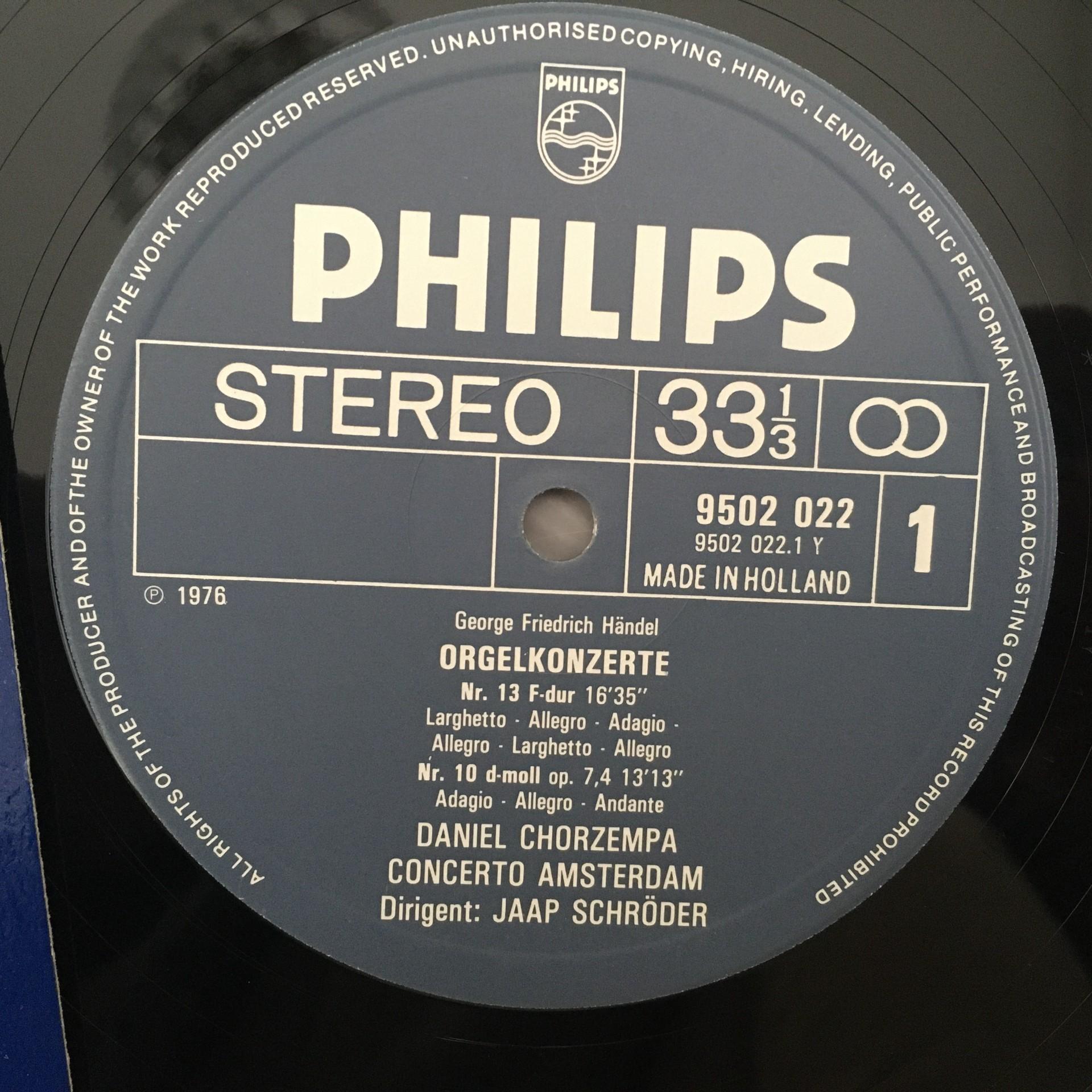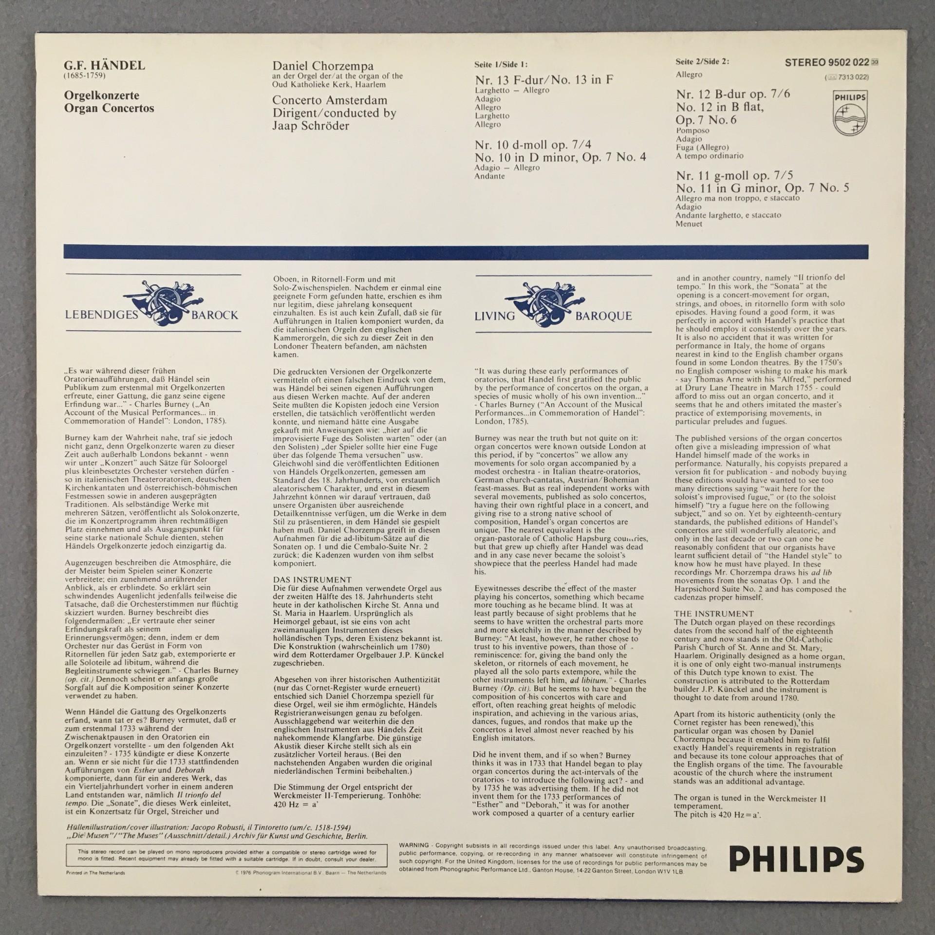 L685 Handel Organ Concertos No.10-13 Chorzempa Schröder Philips 9502 022 Stereo