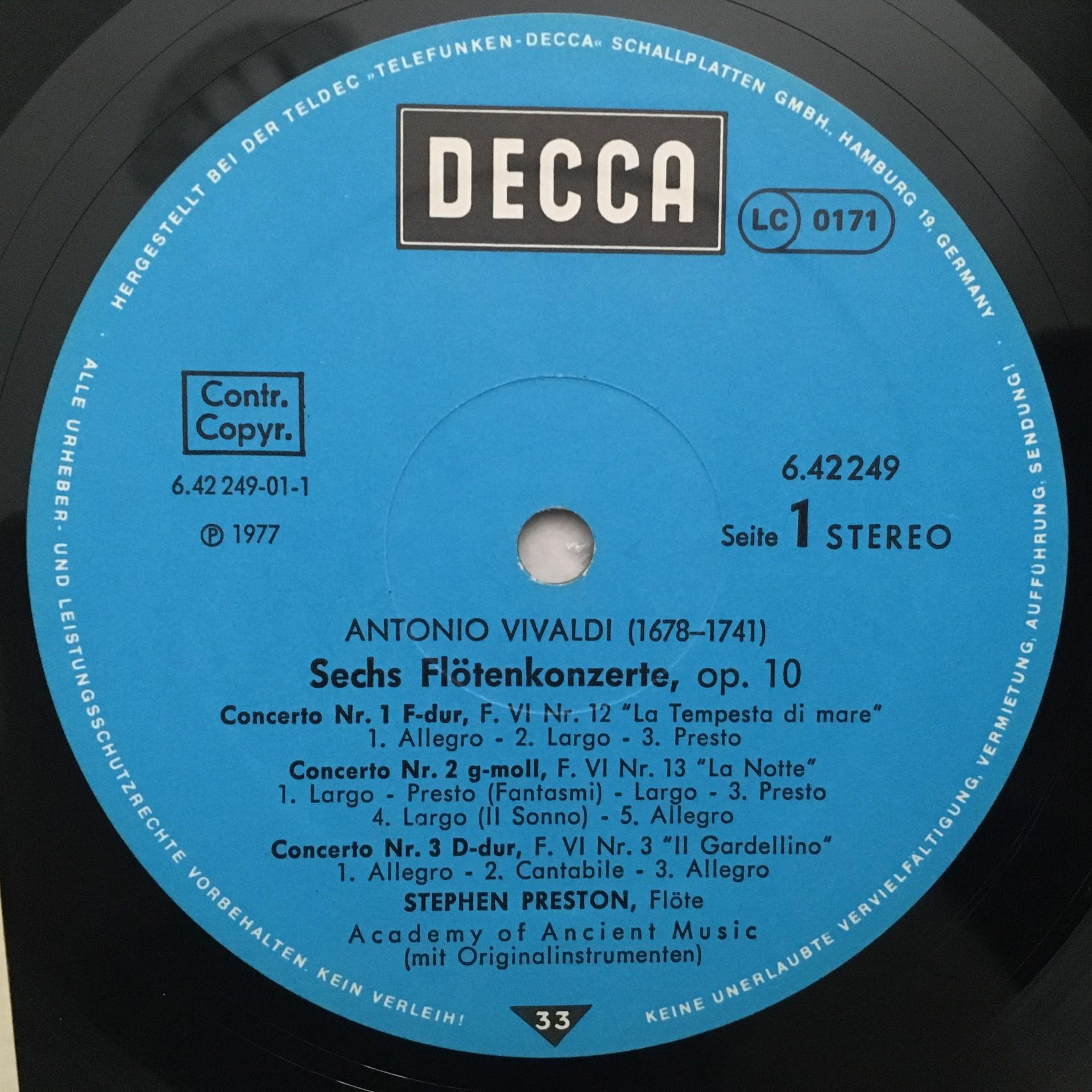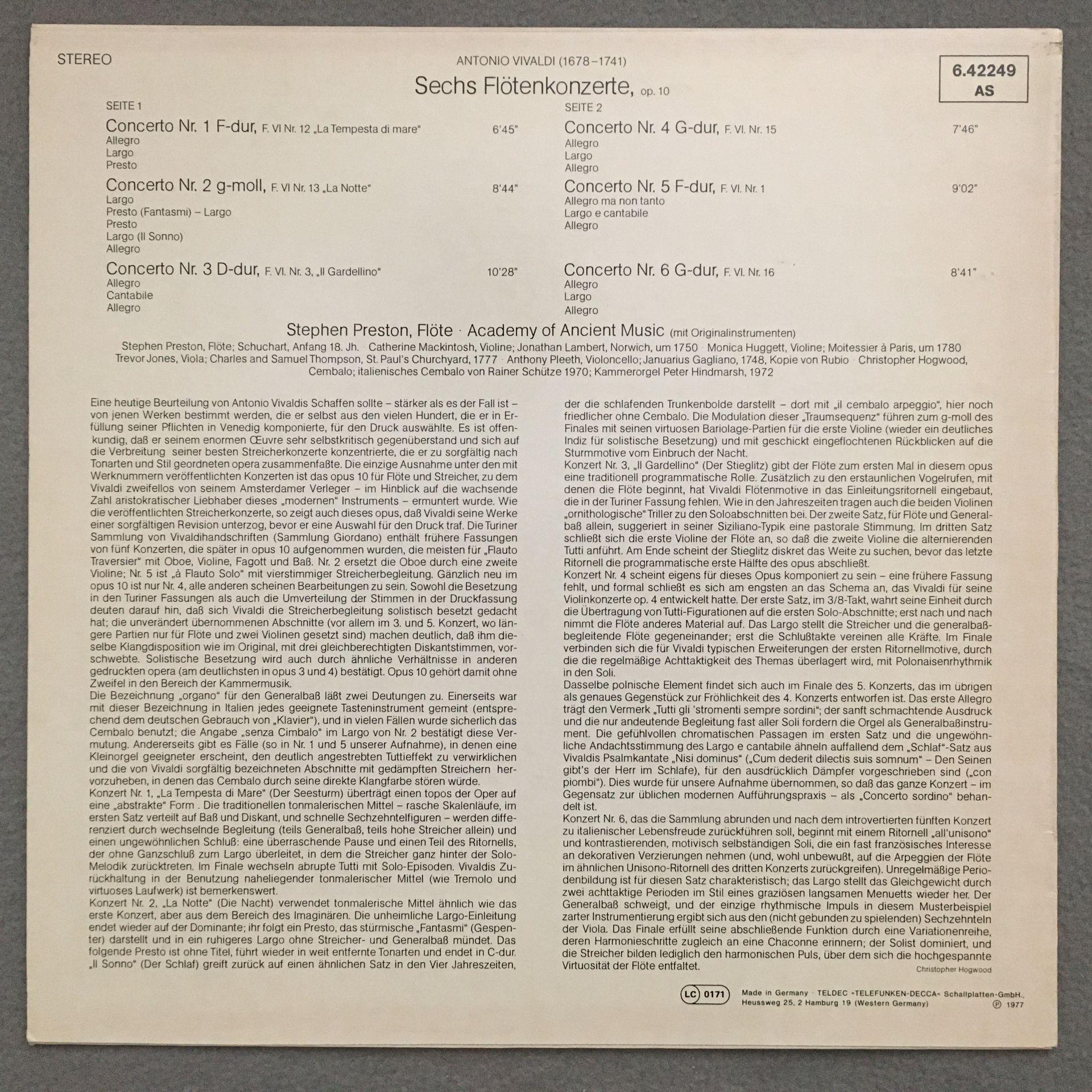 L701 Vivaldi 6 Flute Concertos Preston Hogwood DECCA 6.42249 AS Stereo