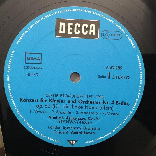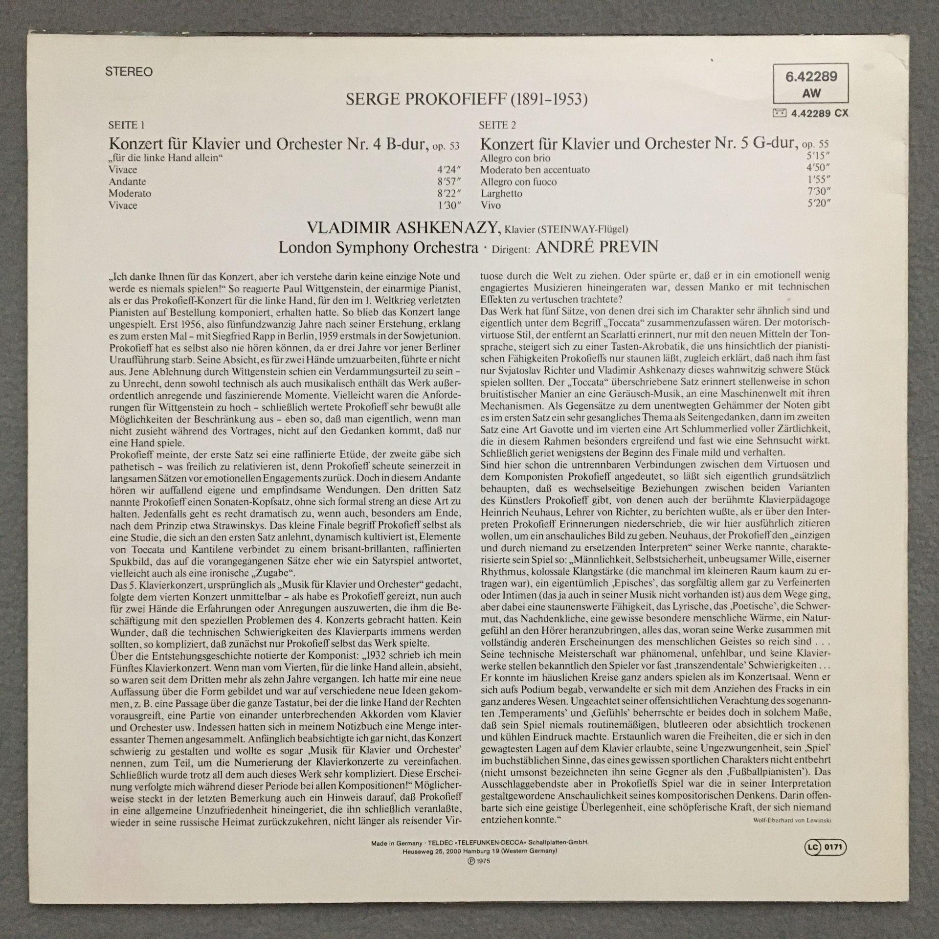 L702 Prokofiev Piano Concertos No.4 & 5 Ashkenazy Previn DECCA 6.42289 AW Stereo