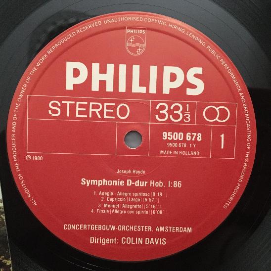 L708 Haydn Symphonies No.86 & No.98 Davis Philips 9500 678 Stereo
