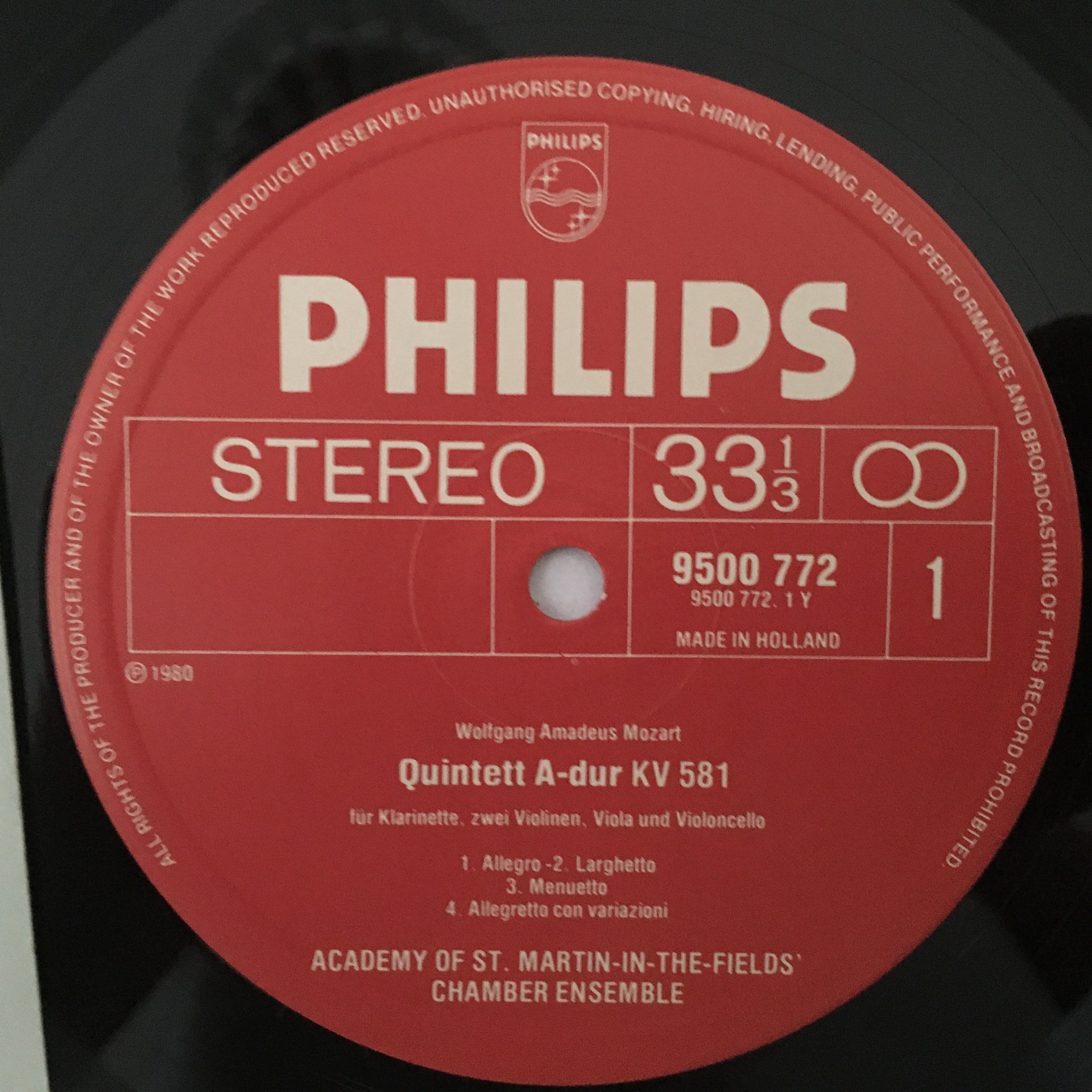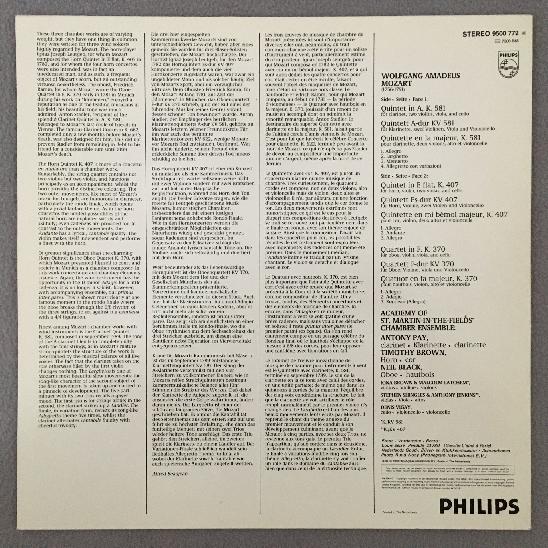 P395 Mozart Quintets Quartet Pay Clarinet Brown Black Philips 9500 772 Stereo