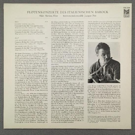 P396 Flute Concertos Italian Baroque Marion Jaques Prat FSM 43 020 Stereo