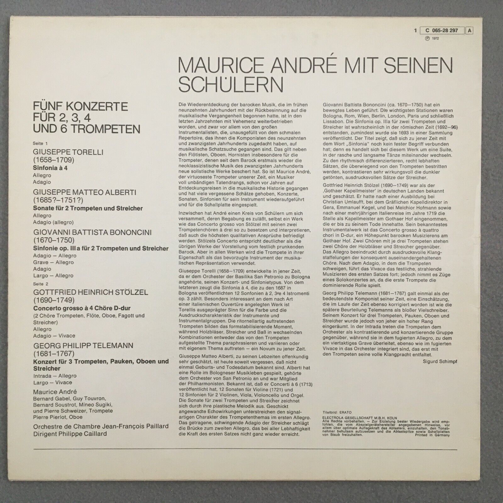 V236 Andre Trumpet Concertos Torelli Alberti Paillard EMI 1 C 065-28 297 Stereo