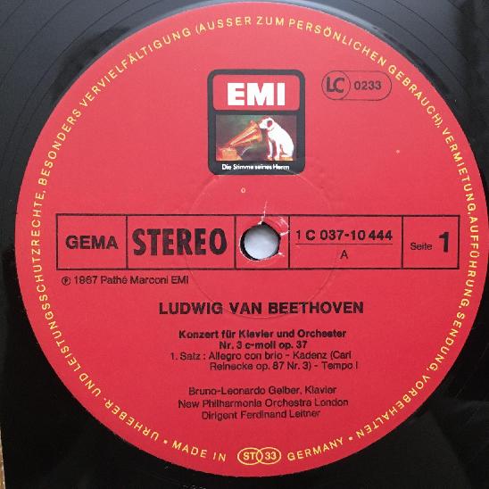 L729 Beethoven Piano Concerto No.3 Gelber Leitner LPO EMI 1C 037-10 444 Stereo