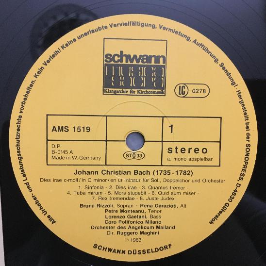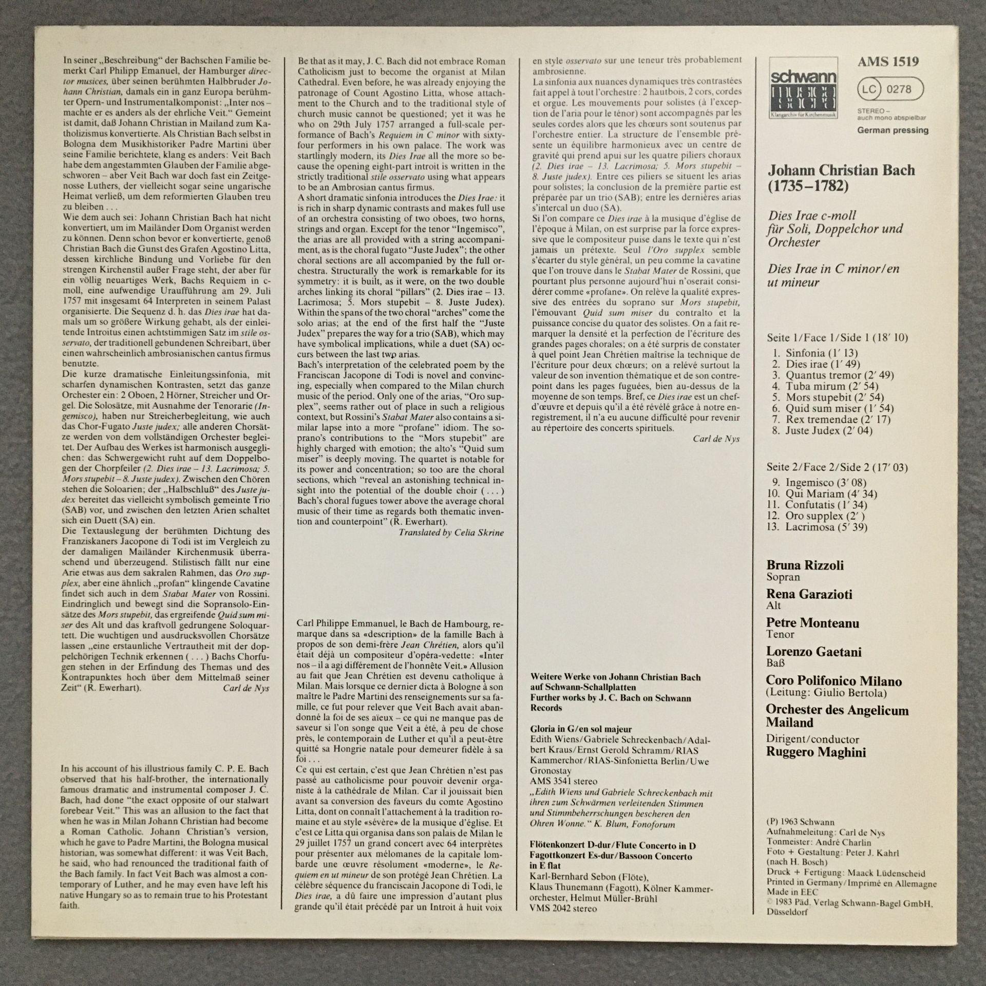 L732 J.C. Bach Dies Irae Rizzoli Maghini Schwann AMS 1519 Stereo