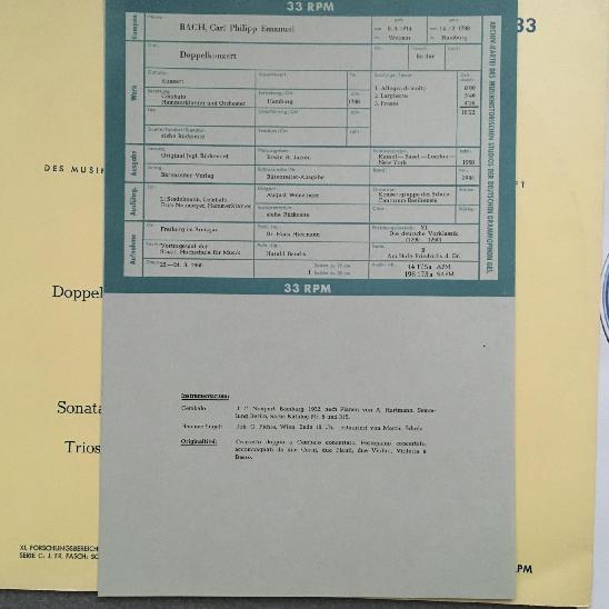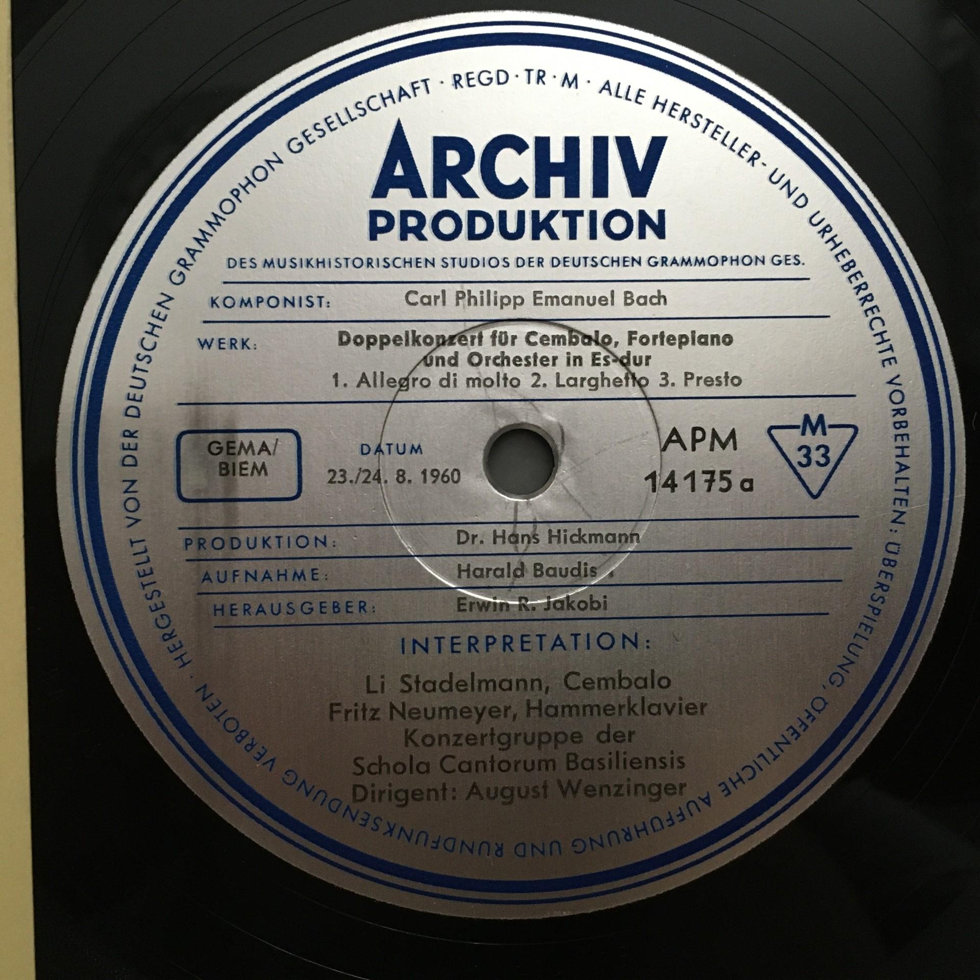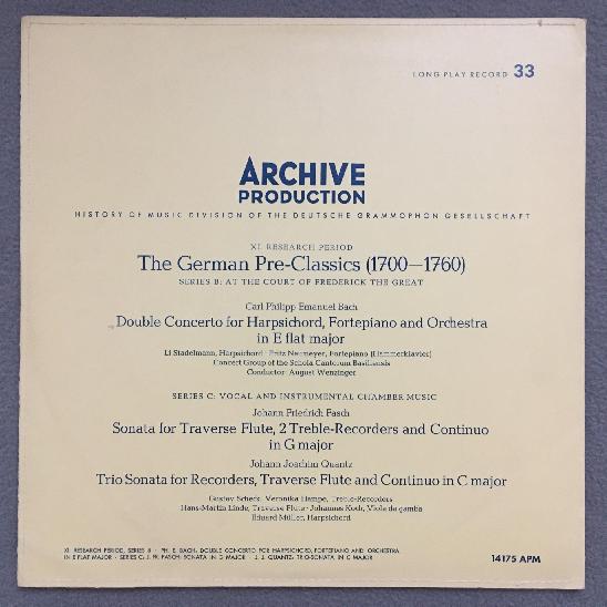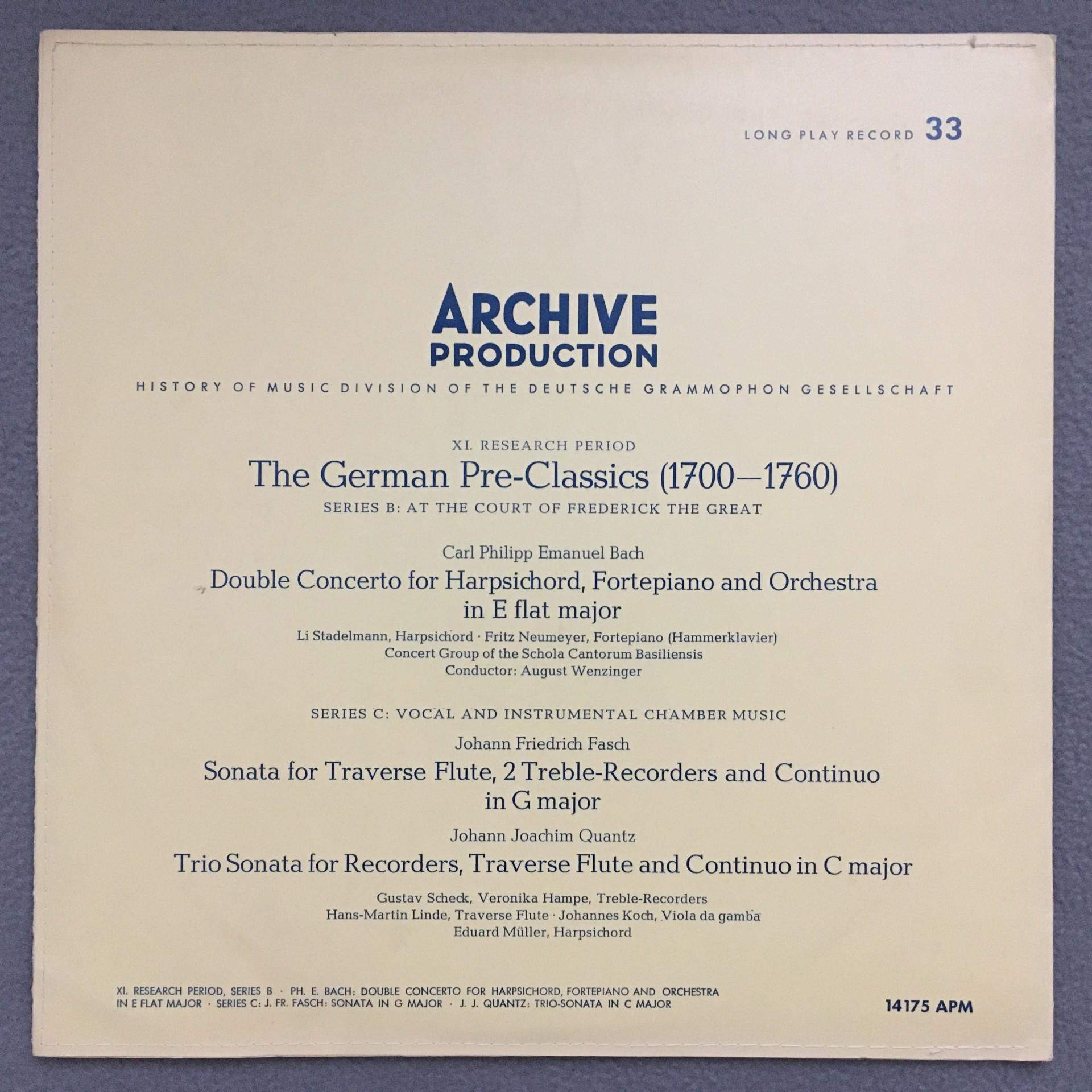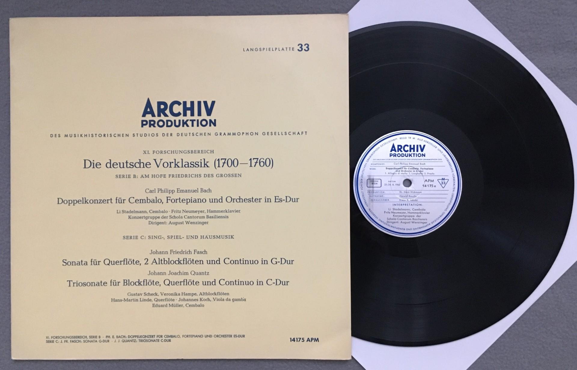 L738 C.P.E. Bach Double Concerto Fasch Sonata Linde DGG Archiv 14 175 APM
