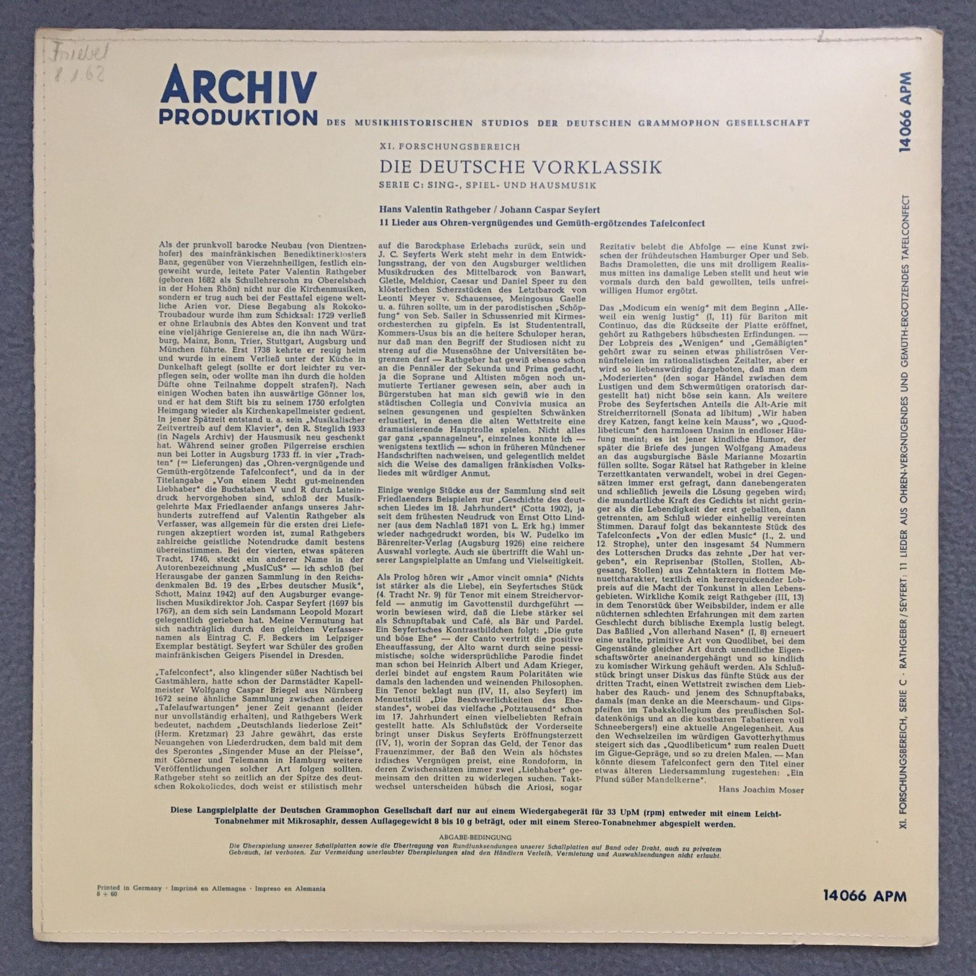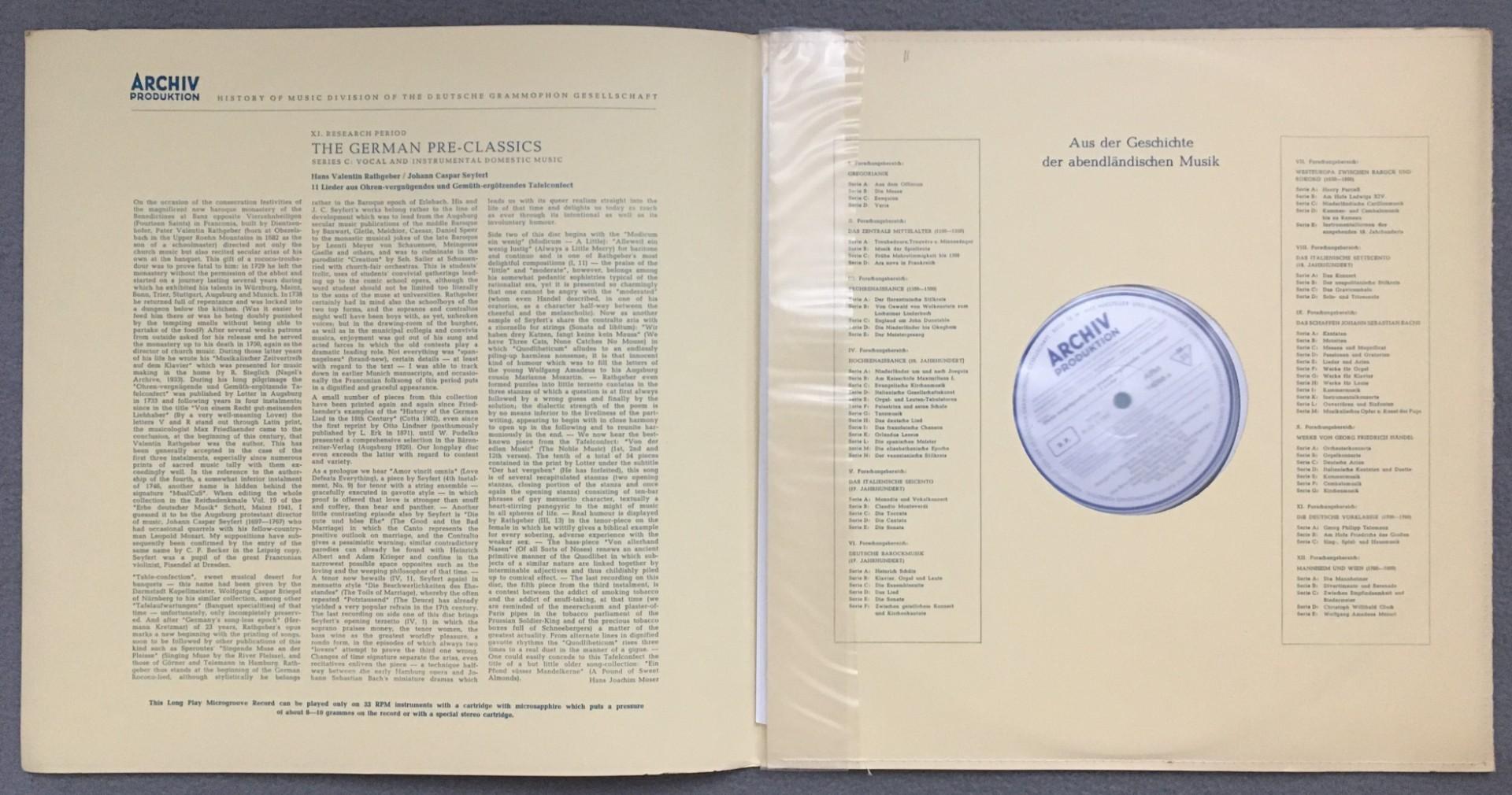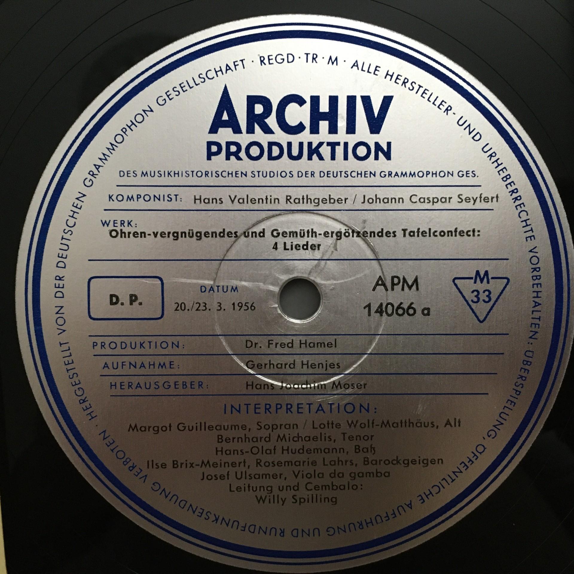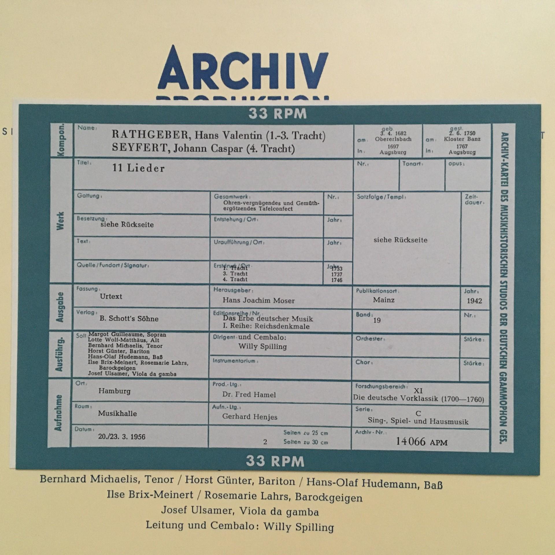L742 Rathgeber Seyfert Songs Guilleaume Ulsamer Spilling DGG Archiv 14 066 APM