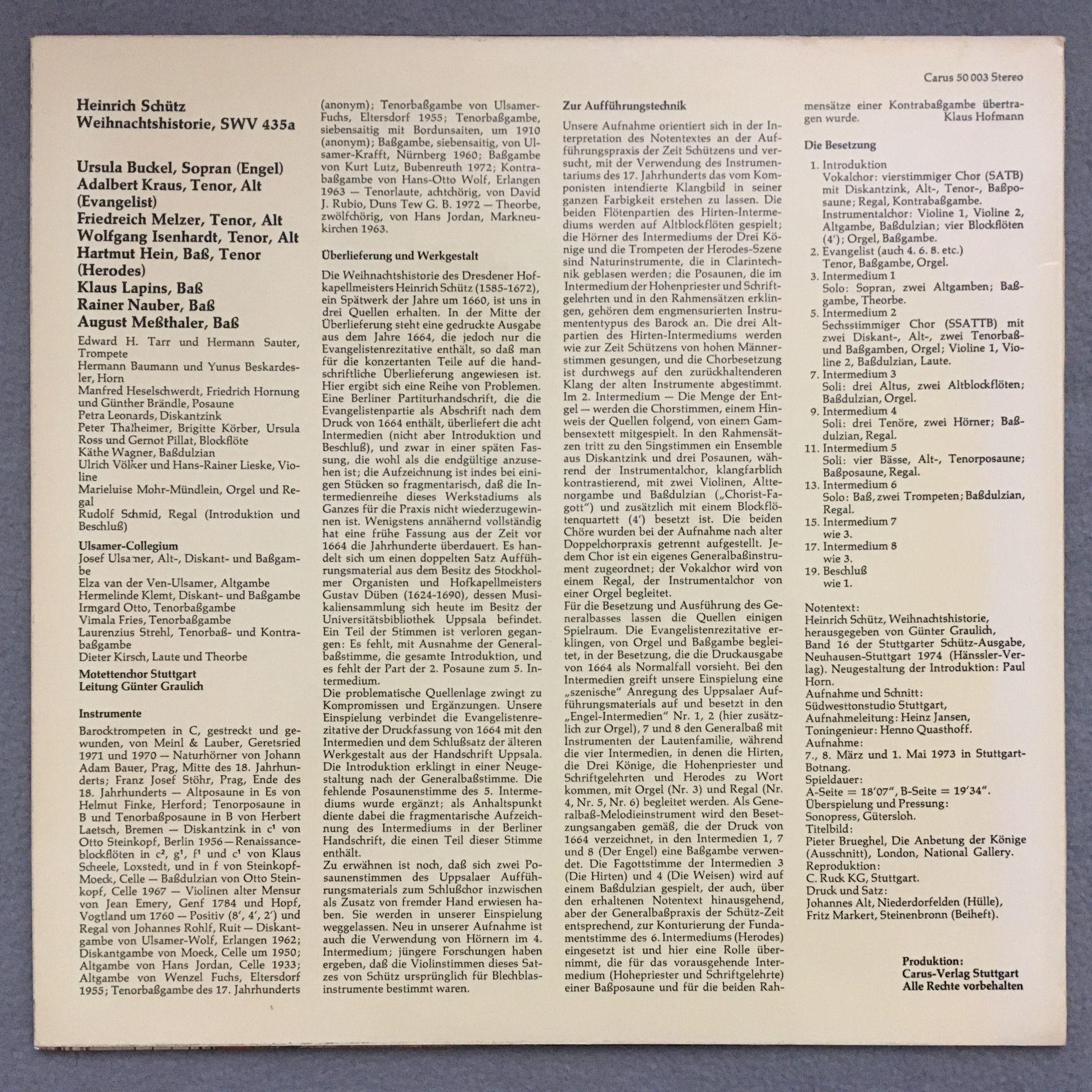 L763 Schütz Christmas History Buckel Kraus Melzer Ulsamer Carus 50 003 Stereo