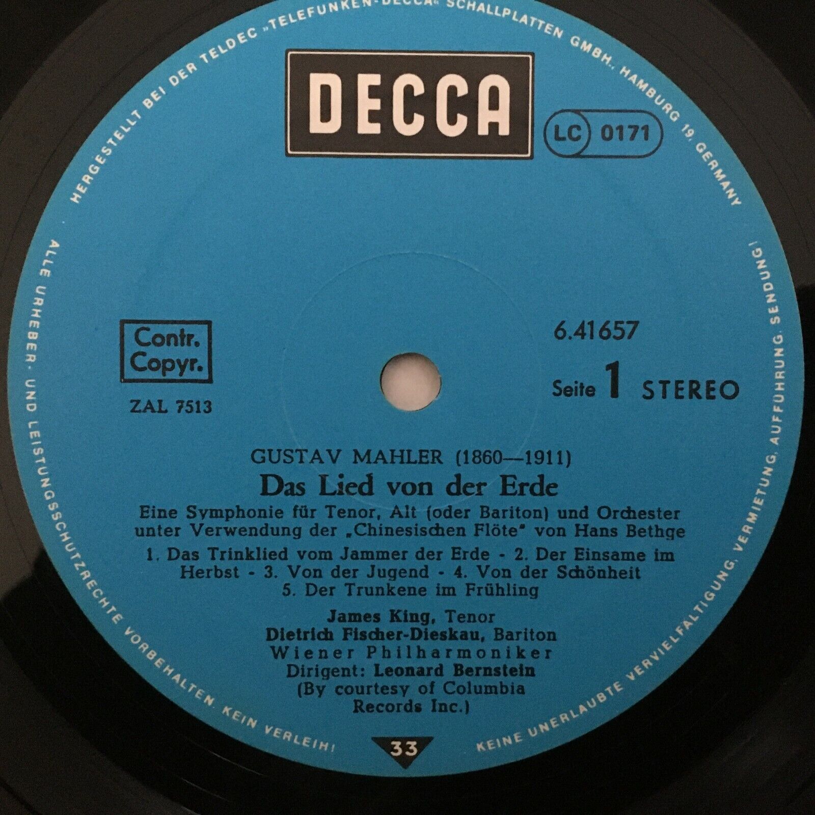 V256 Mahler Song of the Earth King Bernstein VPO DECCA 6.41657 AN Stereo