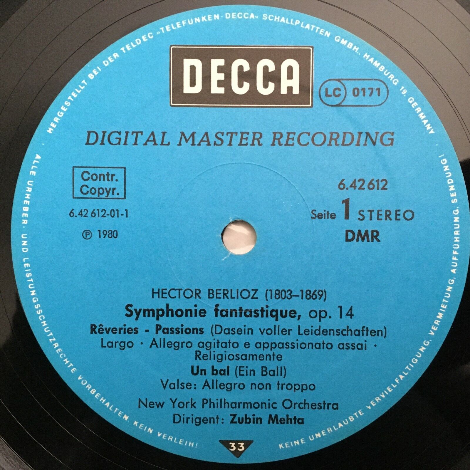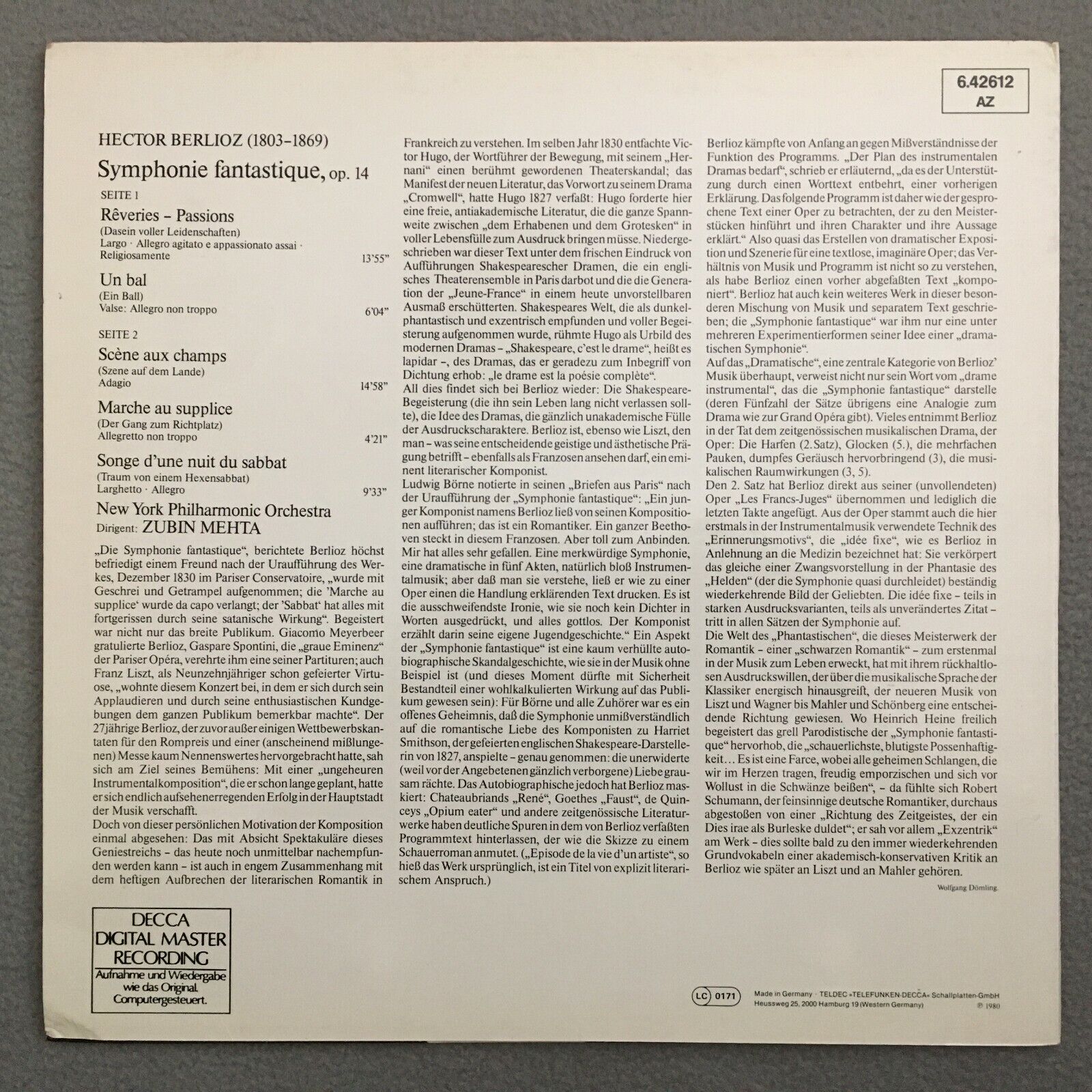 V259 Berlioz Symphony Fantastique Op.14 Mehta DECCA 6.42612 AZ Digital Stereo
