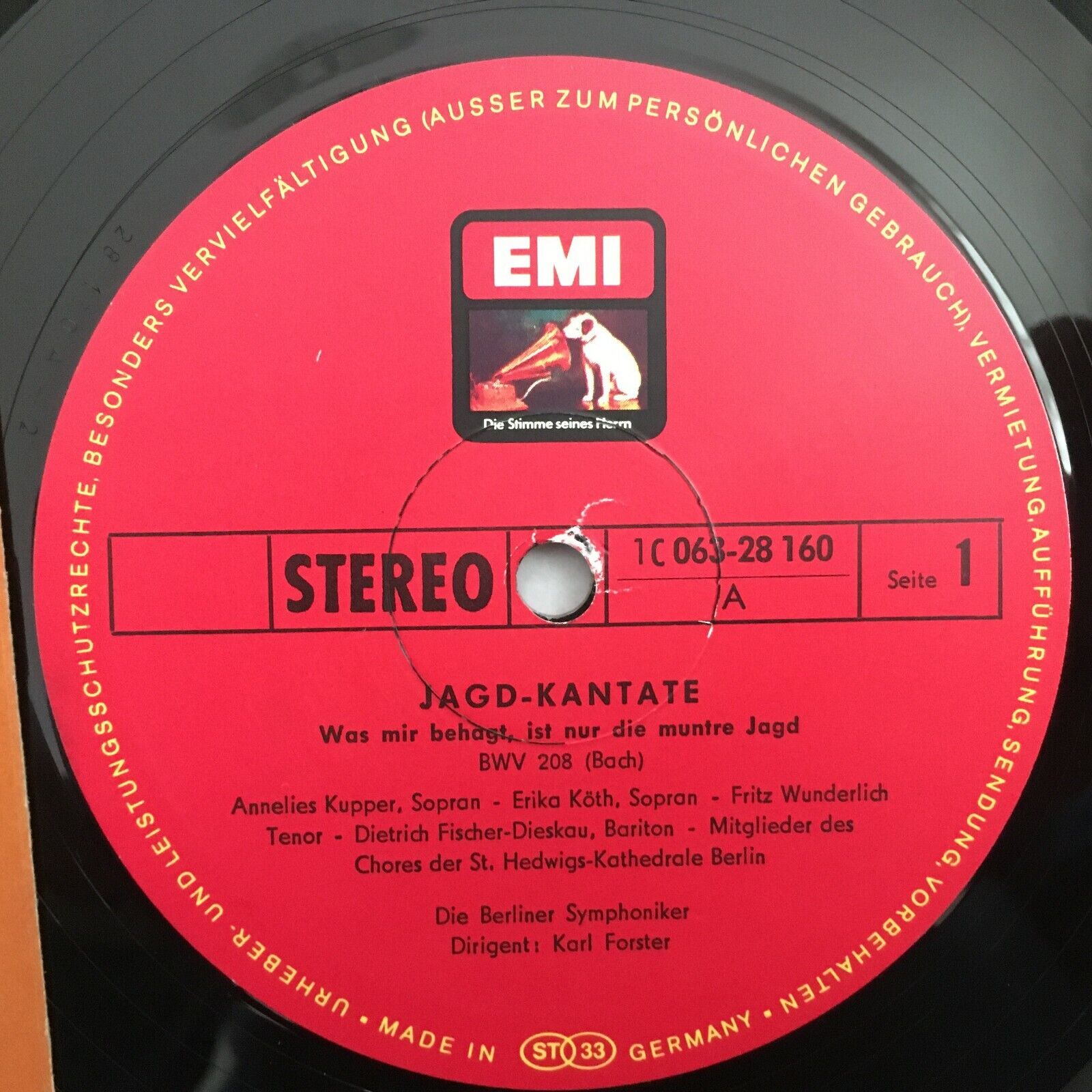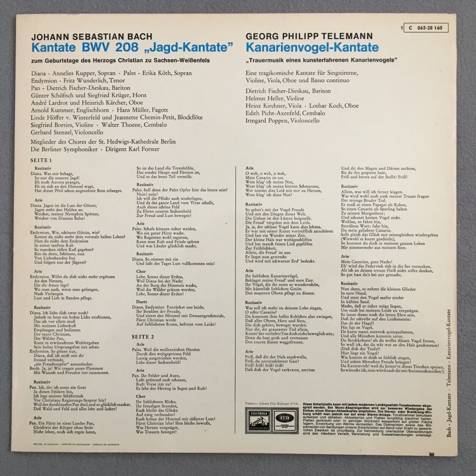 V300 Bach Telemann Cantatas Fischer-Dieskau Forster EMI 1 C 063-28 160 Stereo