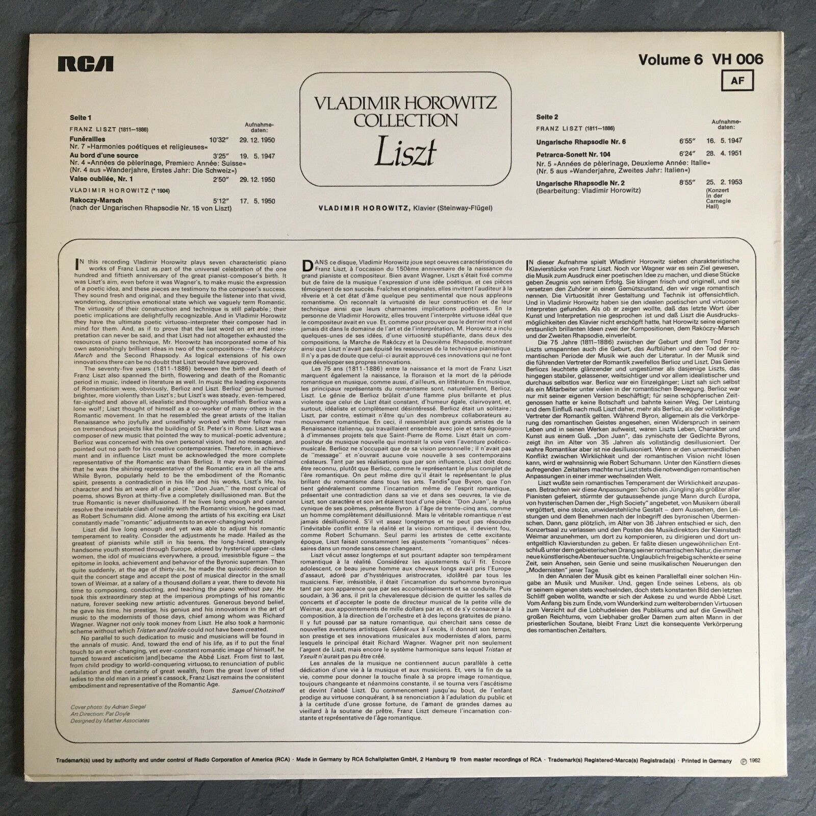 V304 Horowitz Collection Vol.6 Liszt Valse March Rhapsody RCA VH 006