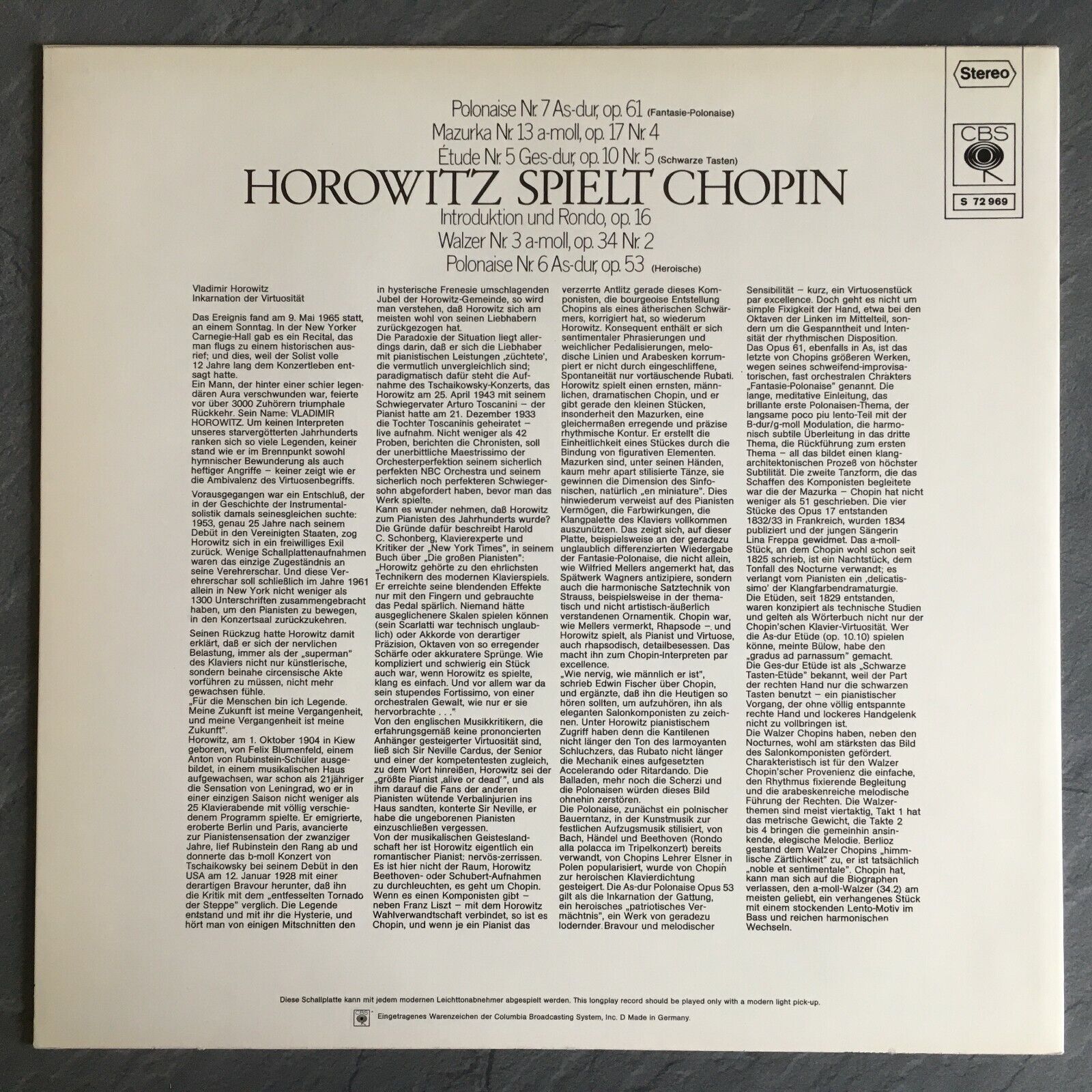 V305 Chopin Prelude Mazurka Etude Waltz Horowitz Piano CBS S 72 969 Stereo