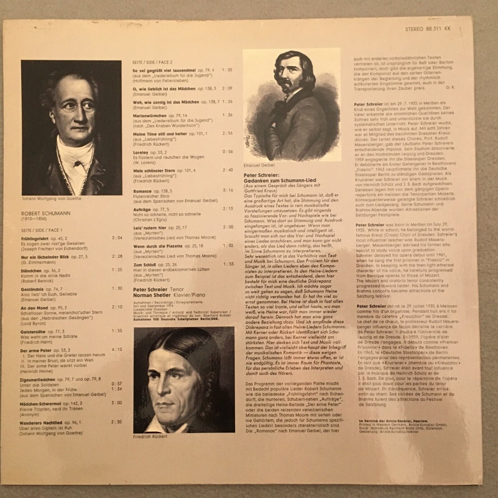 S964 Schumann Romance Songs Schreier Shetler Piano Eurodisc 88 311 KK Stereo