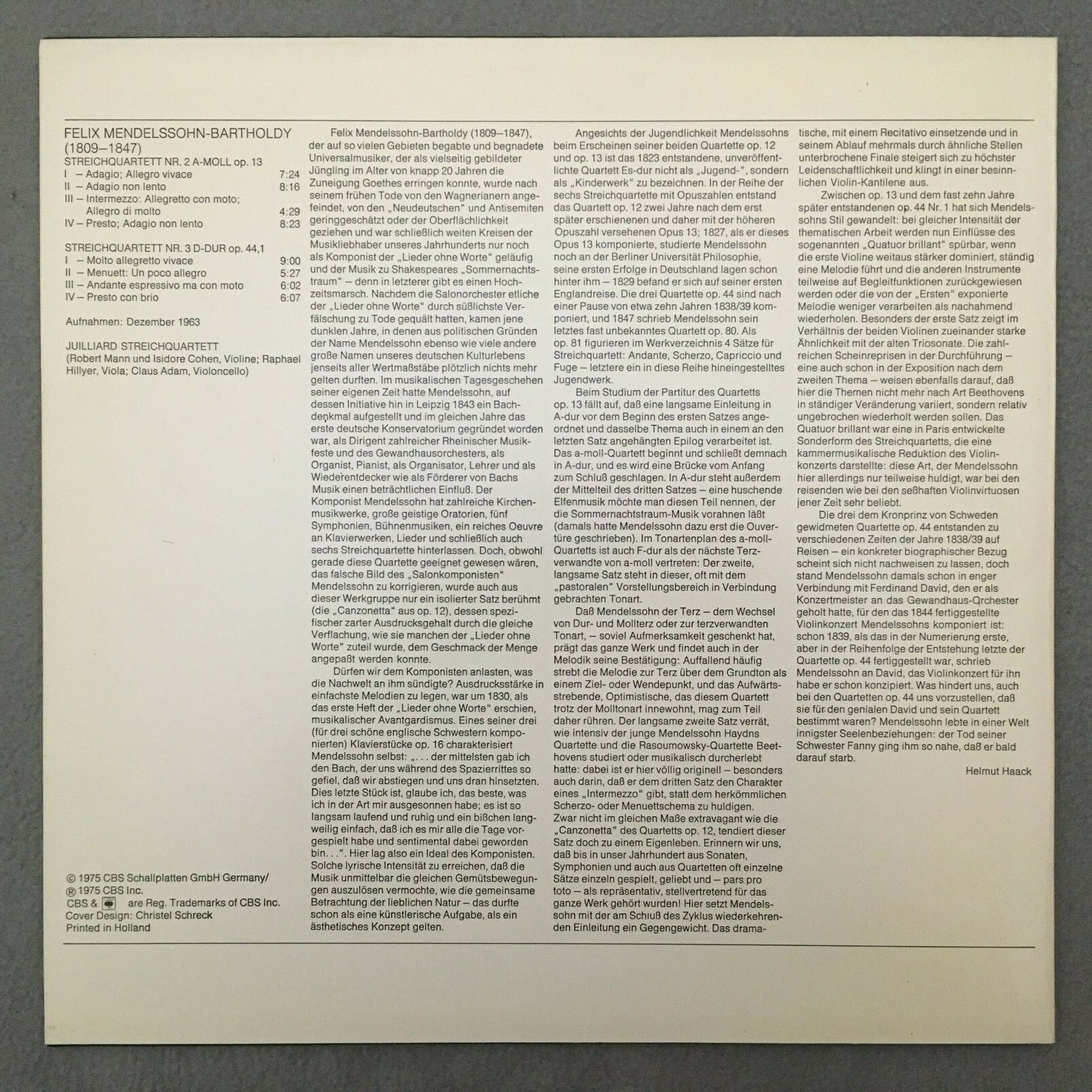 S967 Mendelssohn String Quartets Juilliard String Quartet CBS 61 587 Stereo