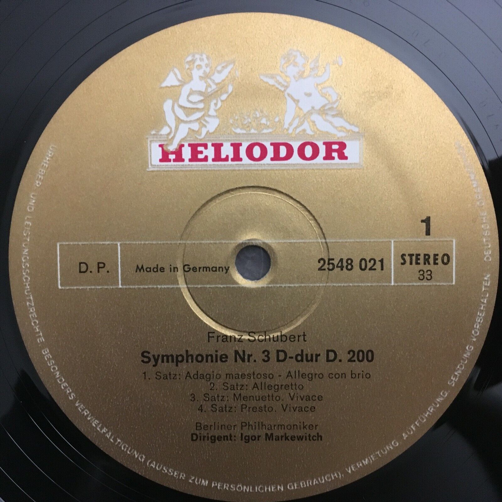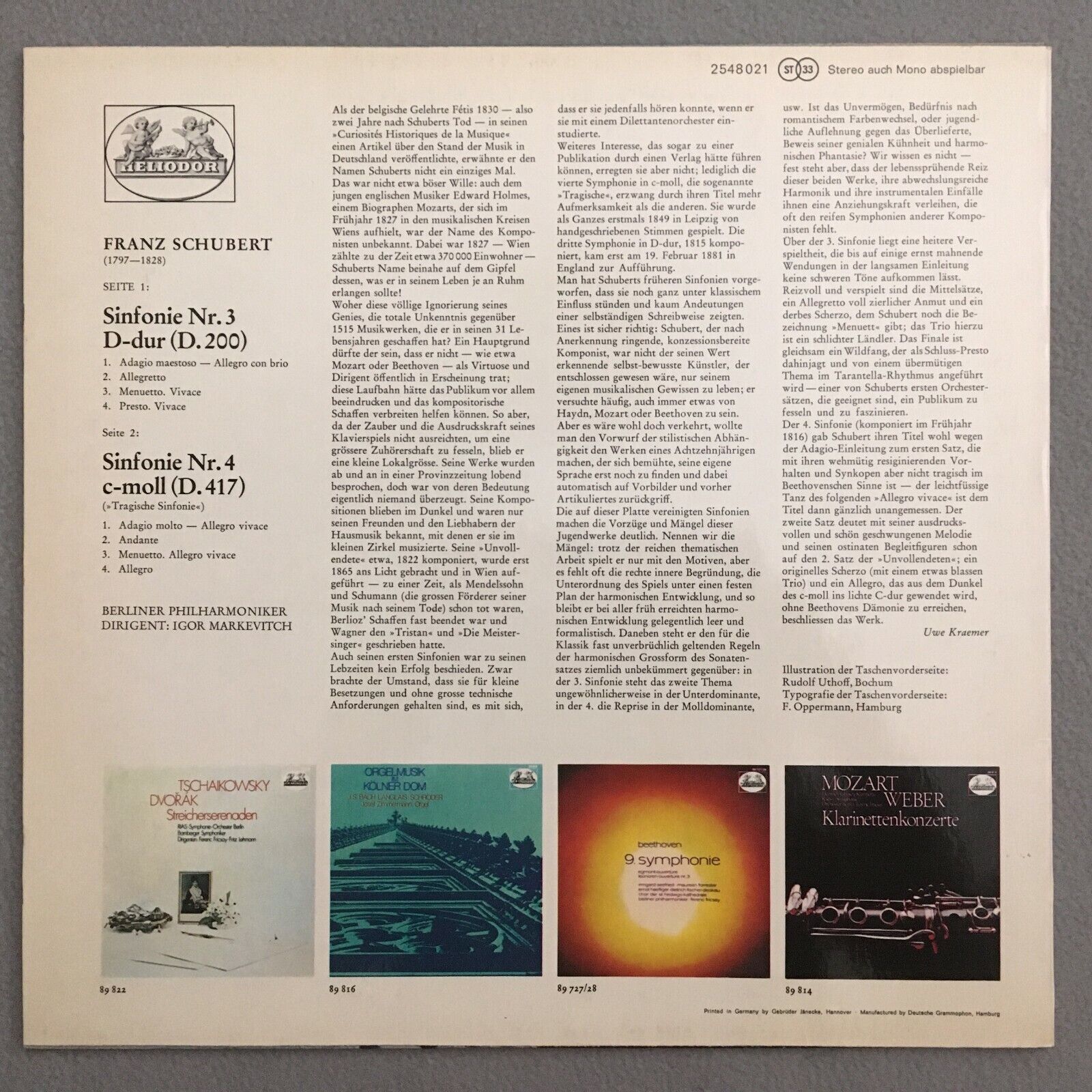 S975 Schubert Symphonies No.3 & No.4 Markevitch BPO Heliodor 2548 021 Stereo