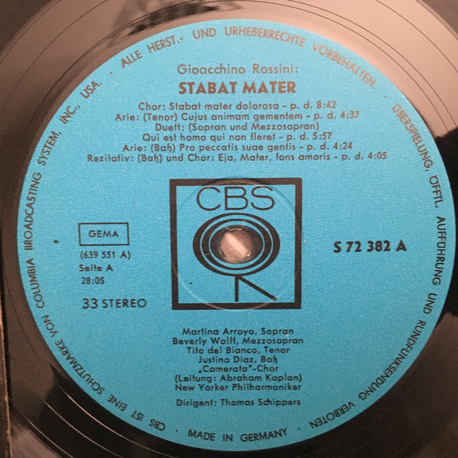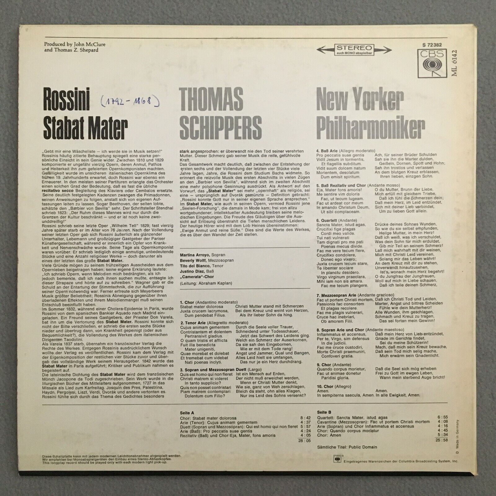S977 Rossini Stabat Mater Arroyo Wolff Del Bianco Schippers CBS S 72 382 Stereo