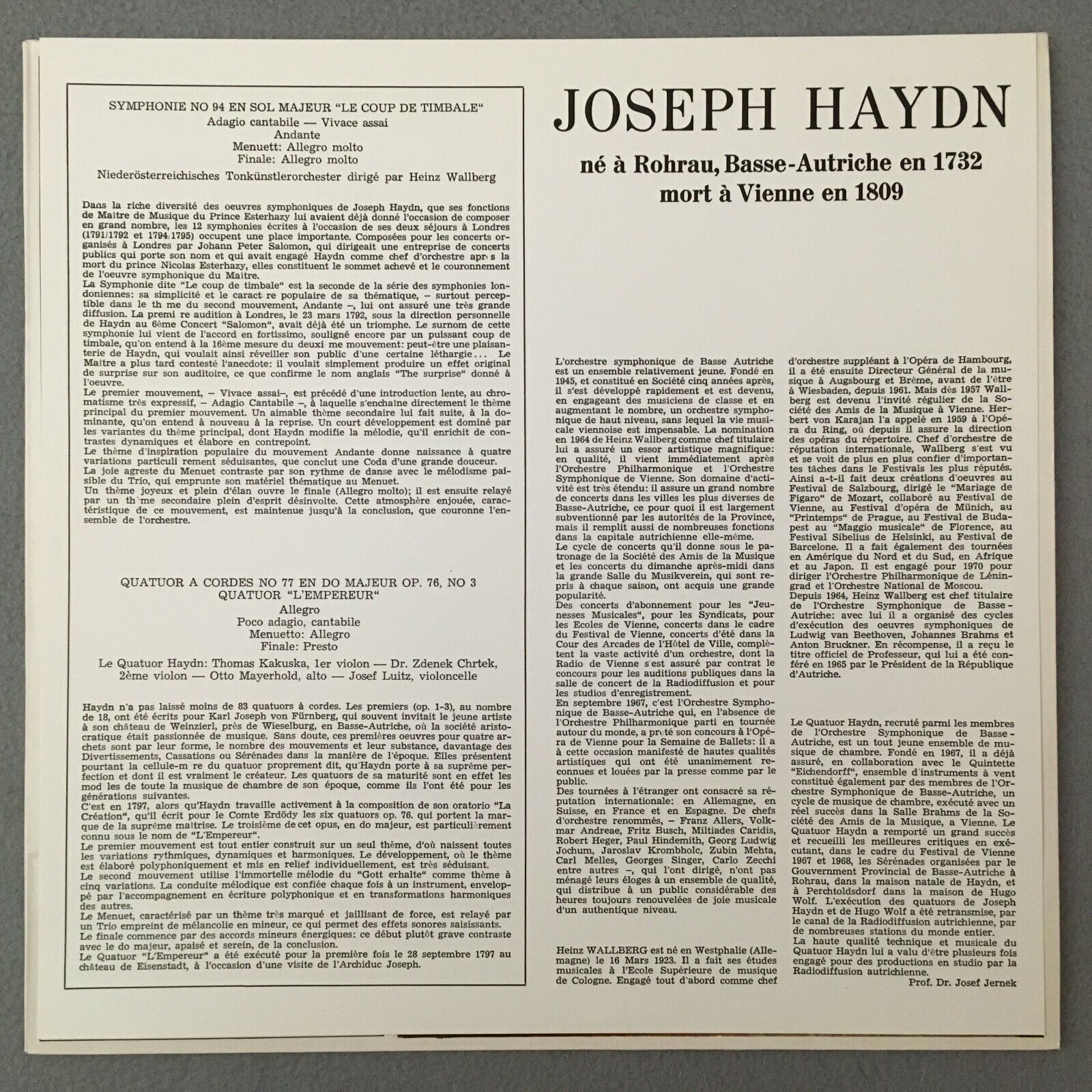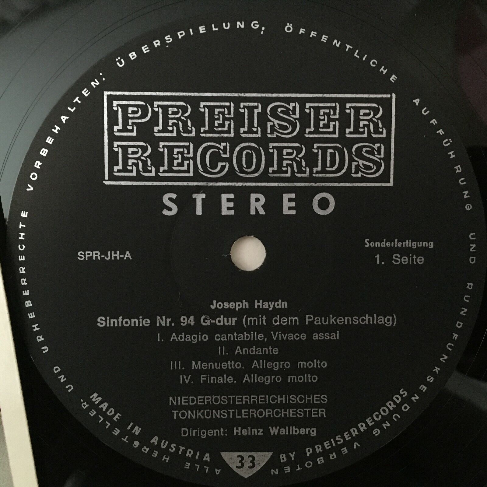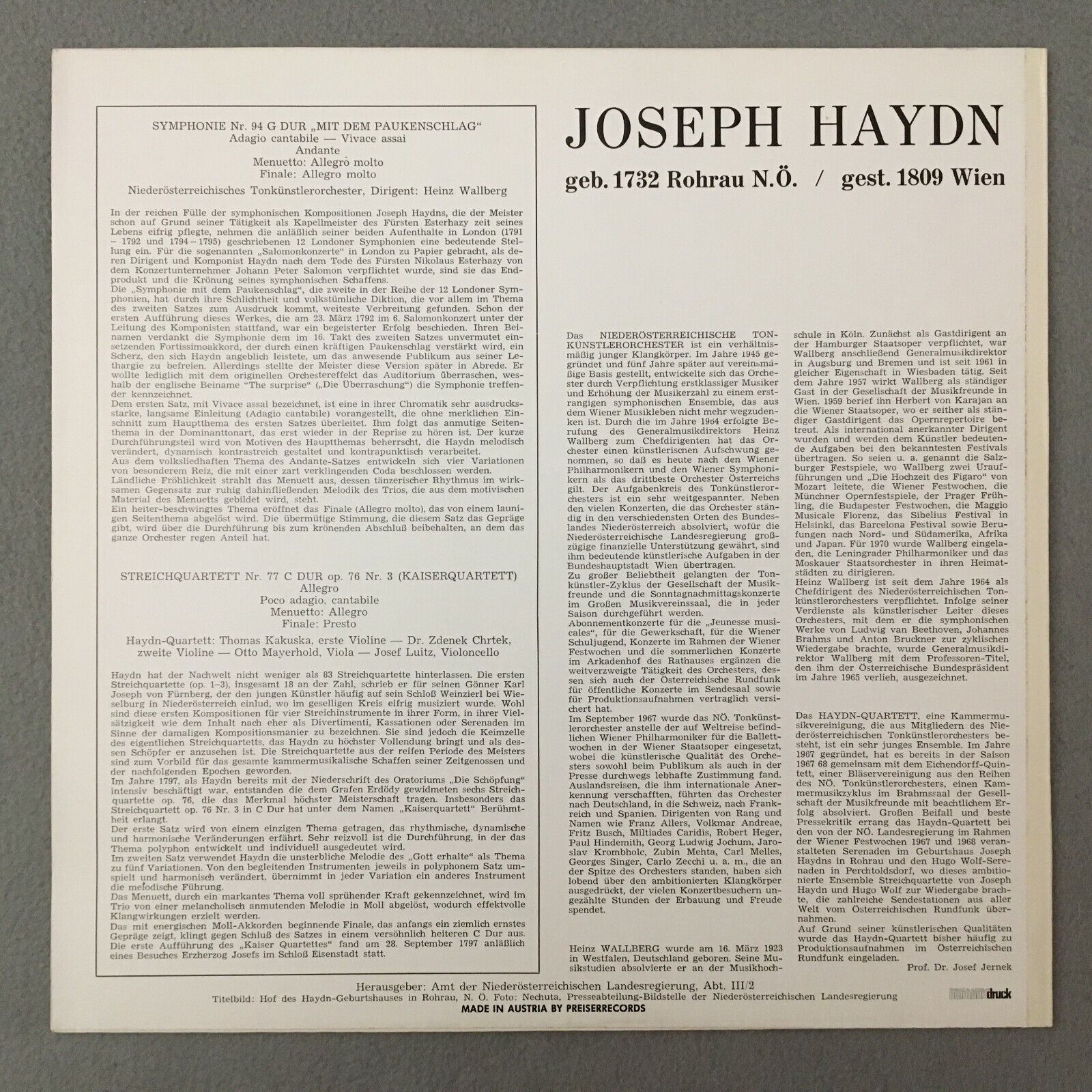 R719 Haydn Symphony String Quartet Wallberg Preiser Records SPR-JH-A Stereo